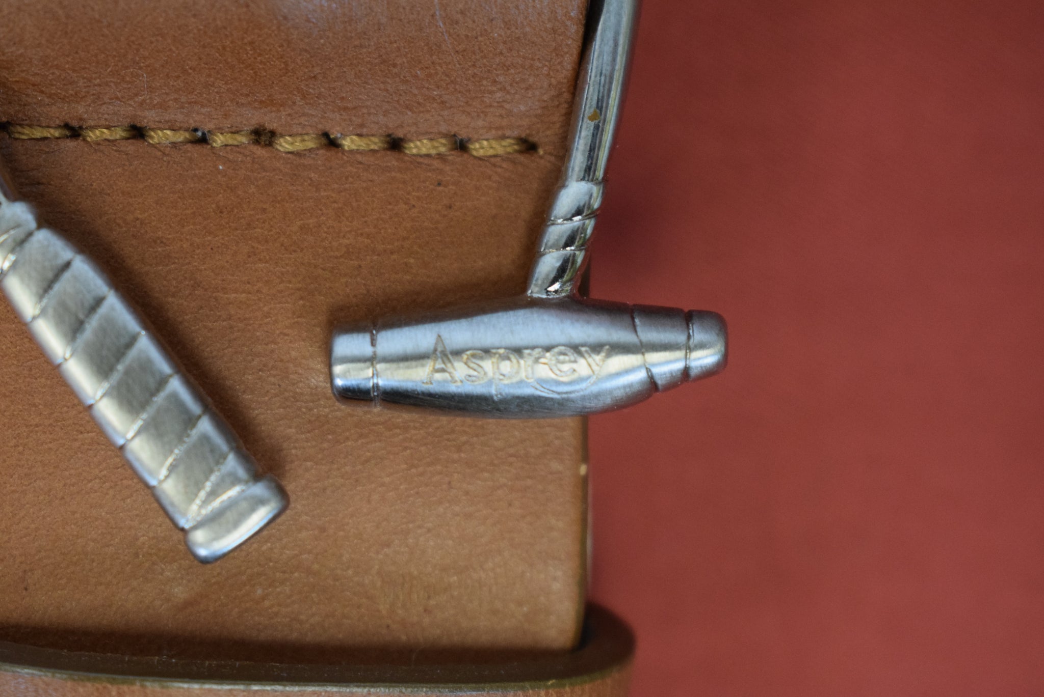"Asprey Bond Street London Saddle Tan Leather Ladies Belt w/ Polo Mallet Silver Buckle" Sz 26 (NWOT)