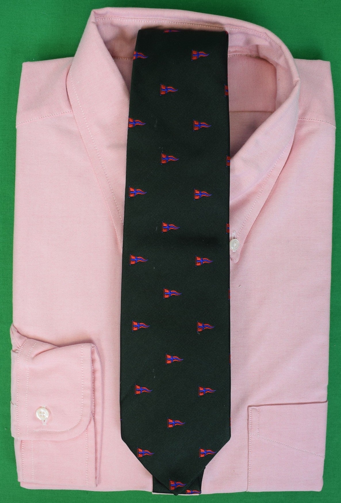 Ben Silver British Racing Green Silk Tie w/ Yacht Club Red Burgee Pennant Motif