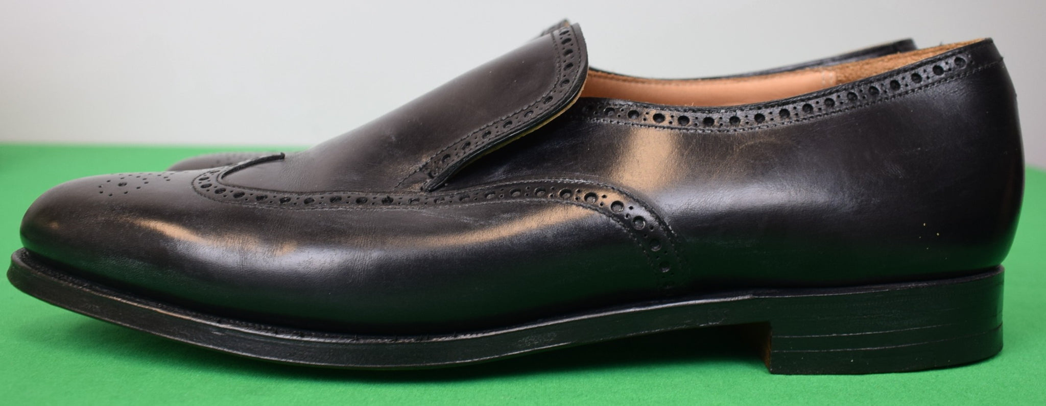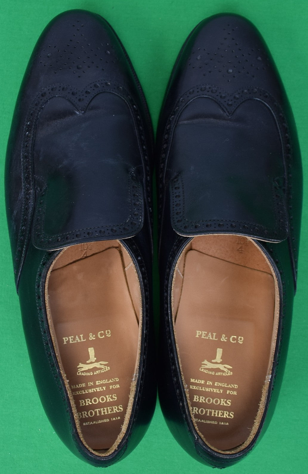 "Brooks Brothers x Peal & Co Made In England Black Calf Brogue Slip-On Dress Shoes" Sz 10 1/2"D