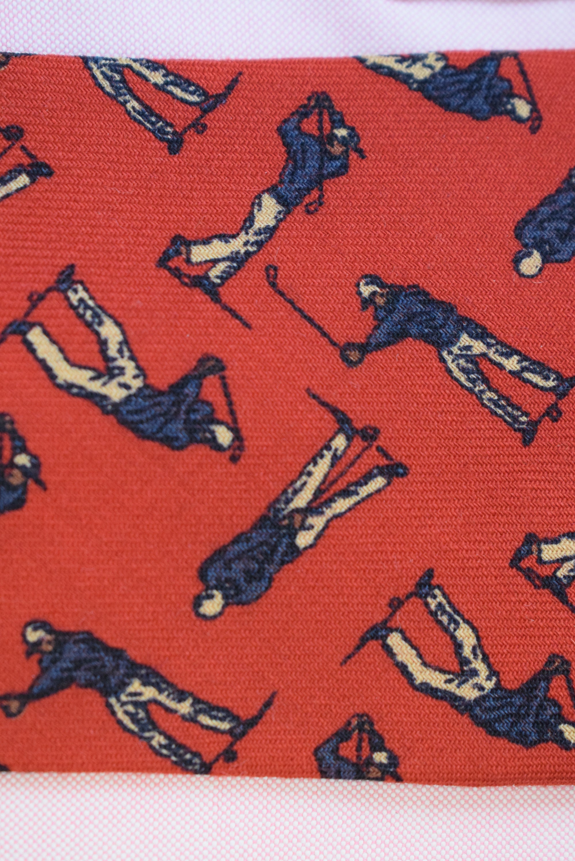 "Chipp 2 Red Wool Challis Golfer Print Club Tie"