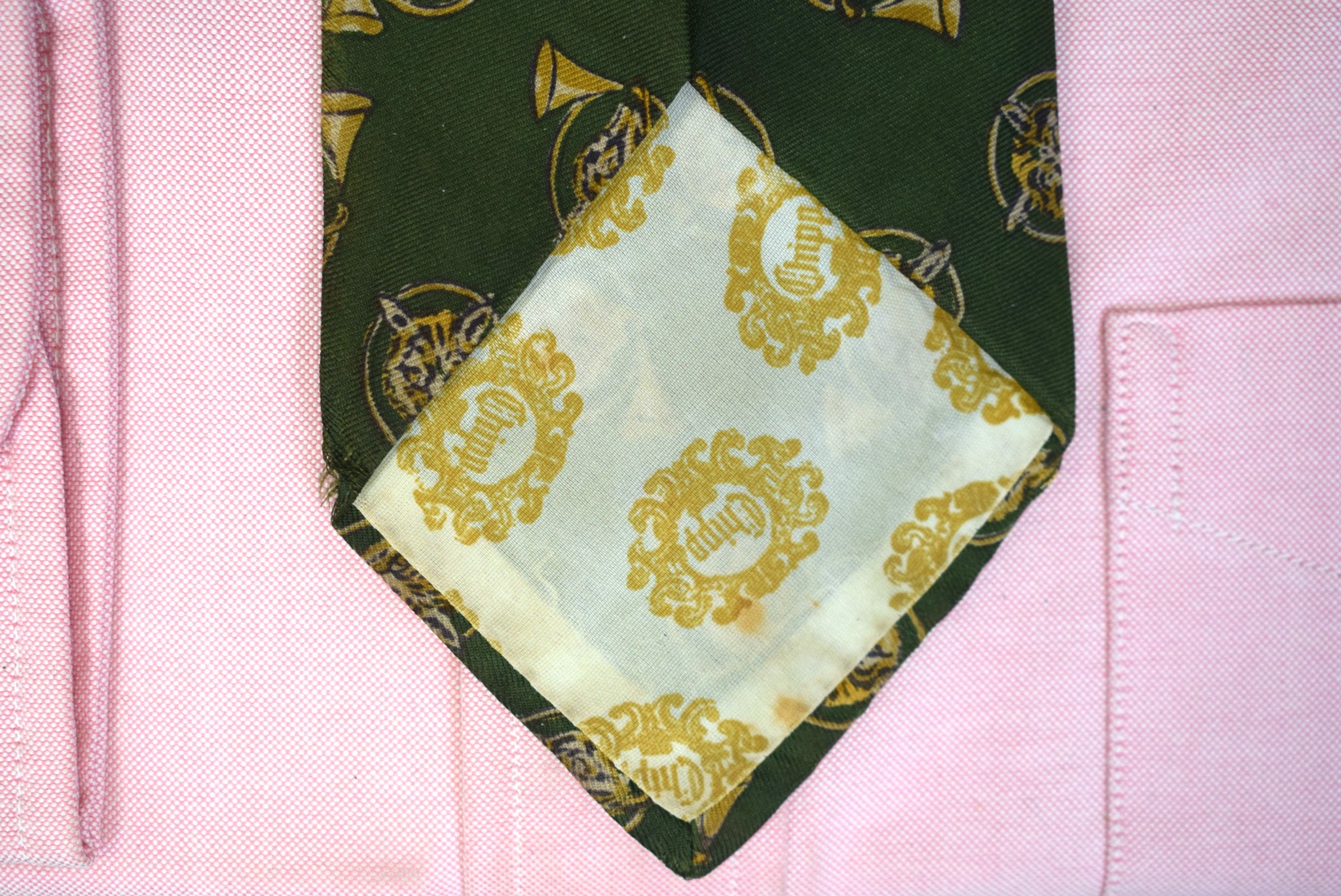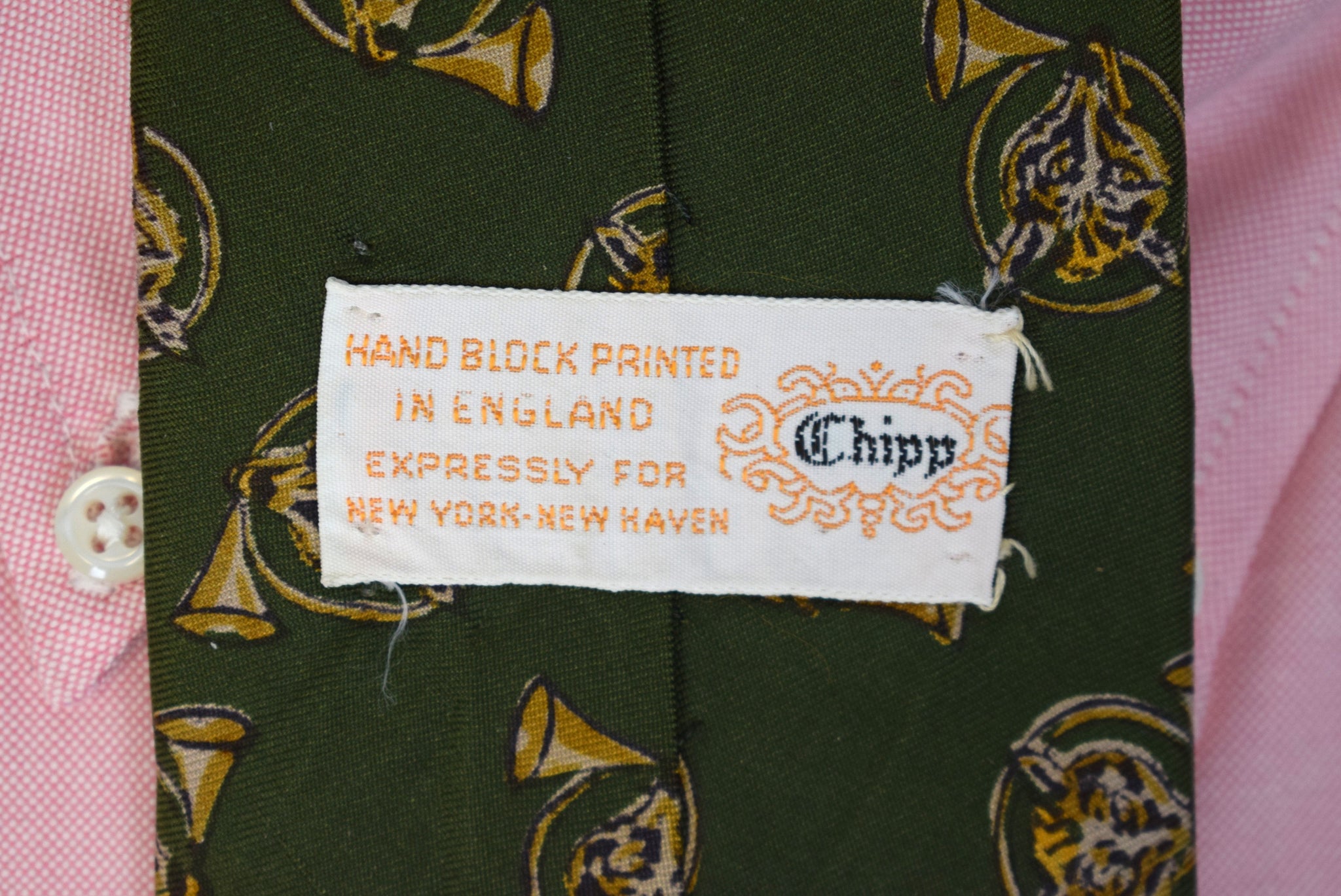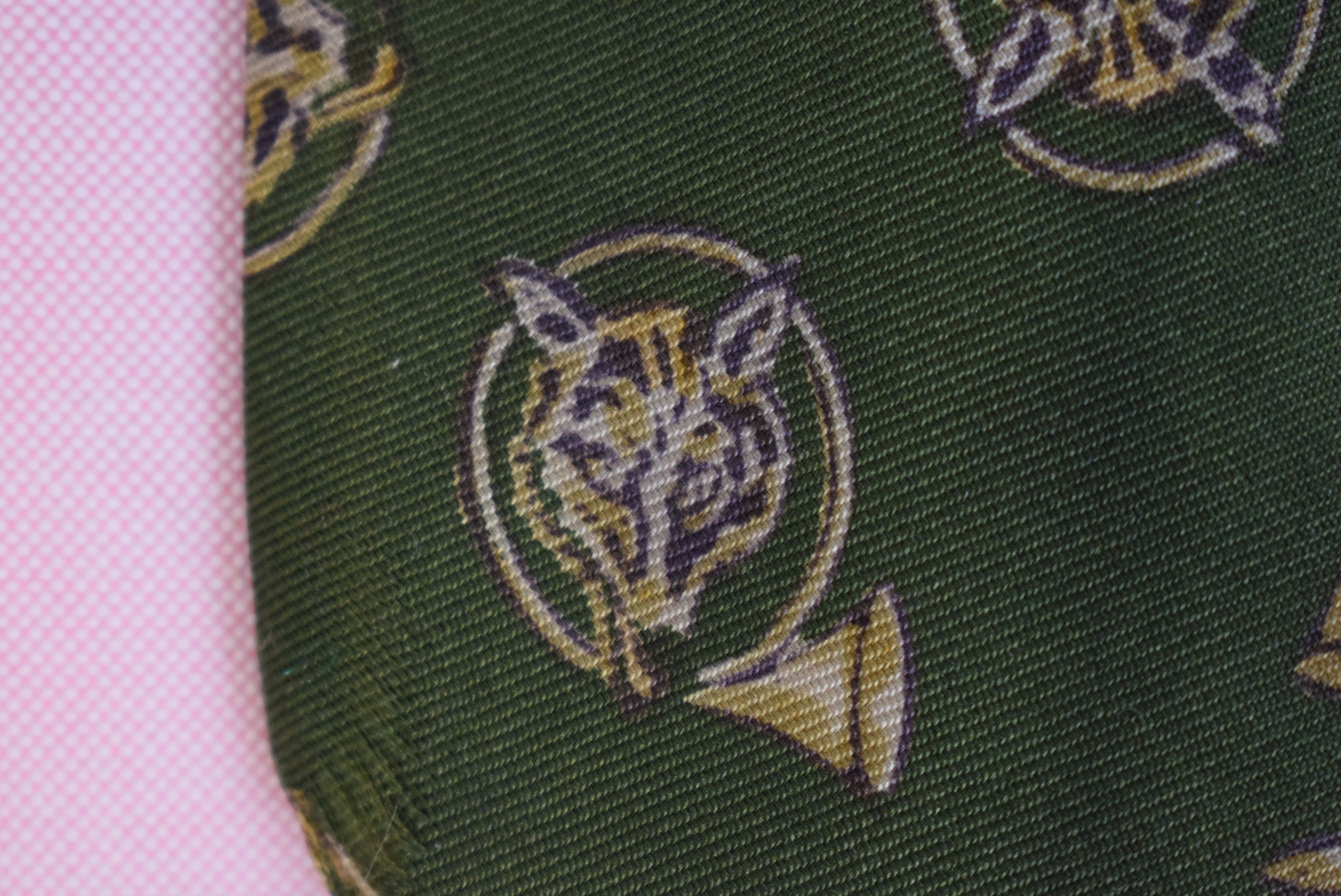 Chipp English Olive Silk w/ Fox Mask & Hunting Horn Print Club Tie