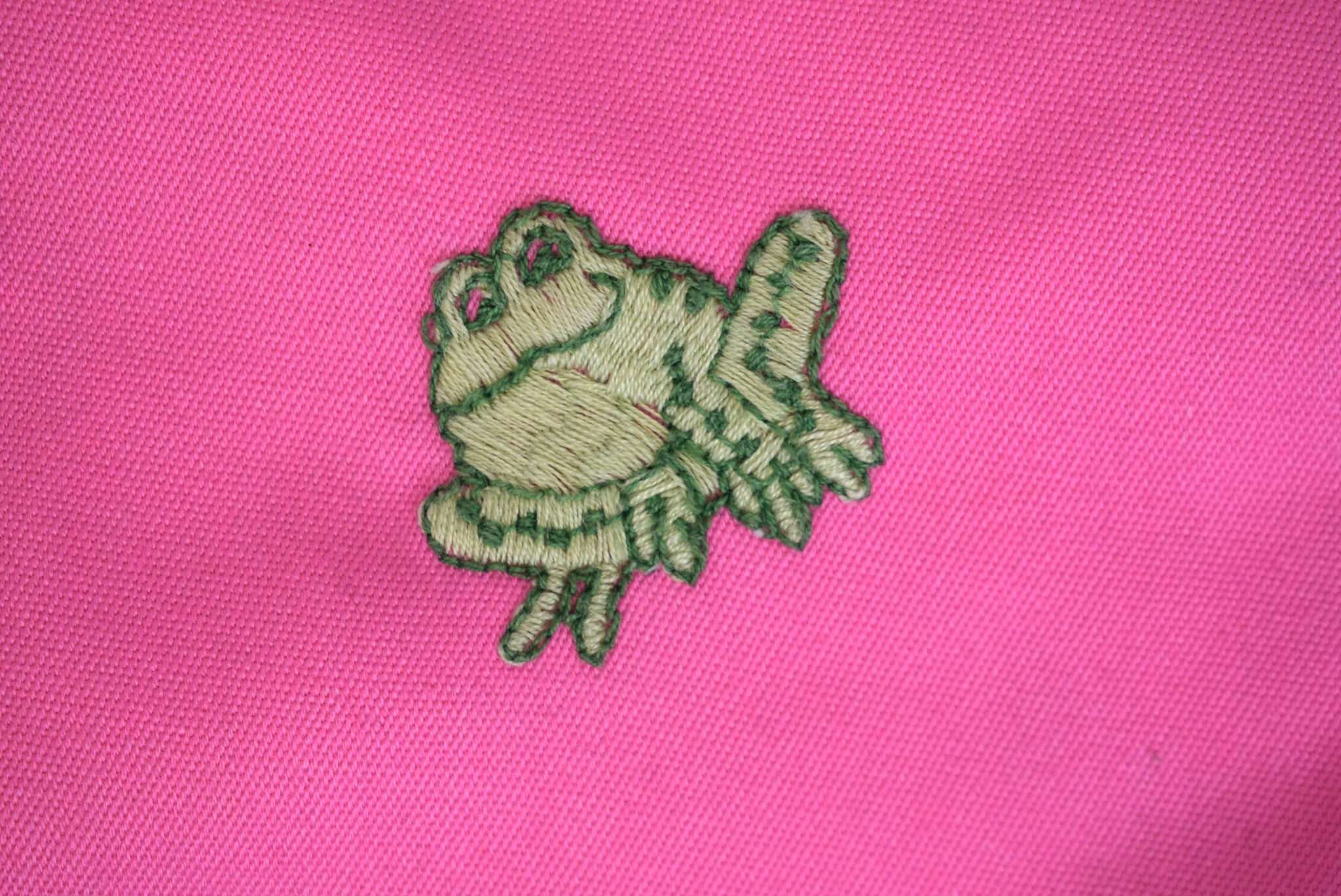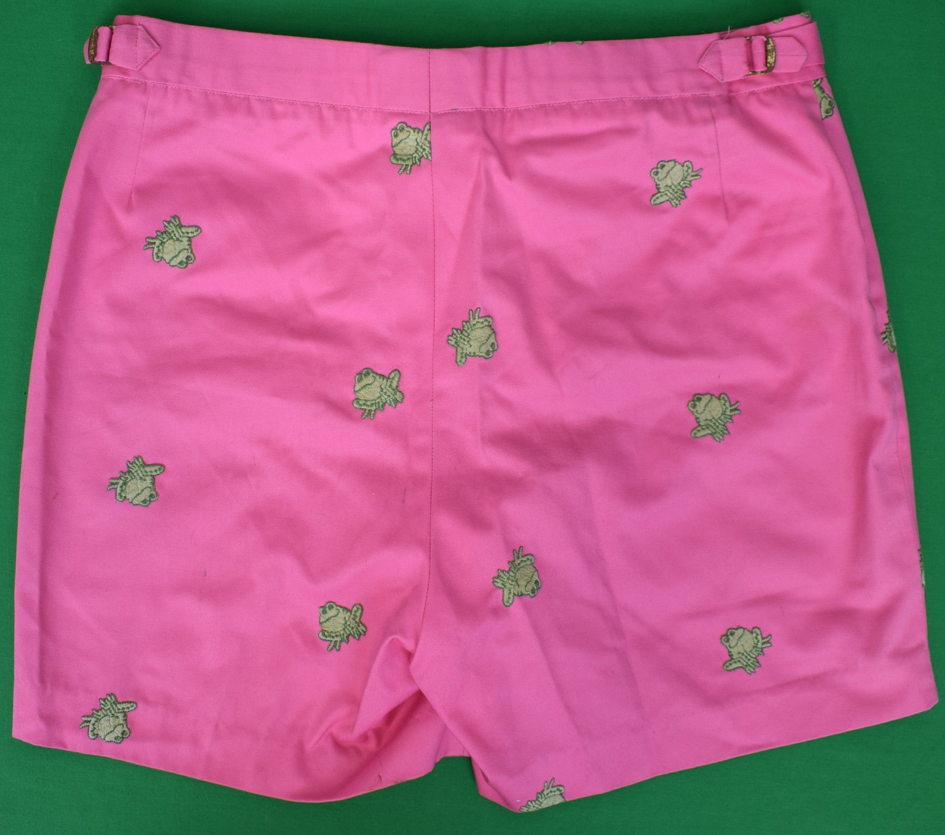 Chipp Hot Pink Chino c1980s Swim Trunks w/ Embroidered Lime Green Frogs Sz 36