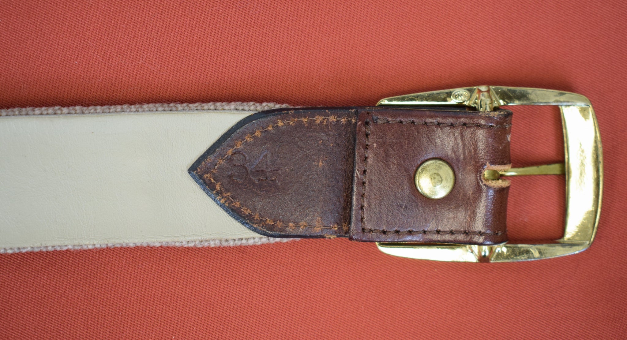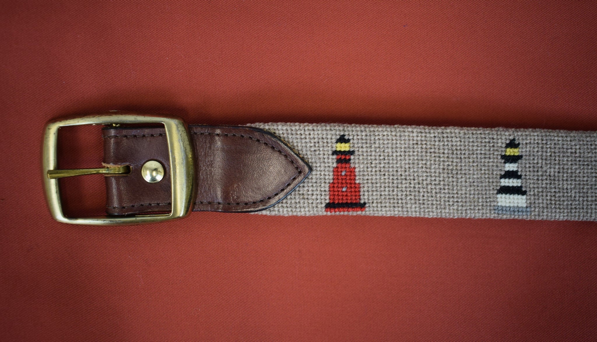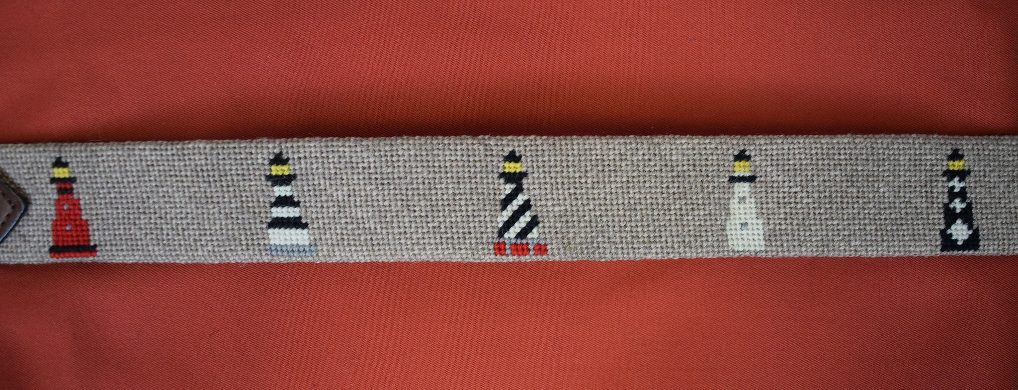 "Hand Needlepoint Belt w/ 12 Lighthouse Motifs" Sz: 34