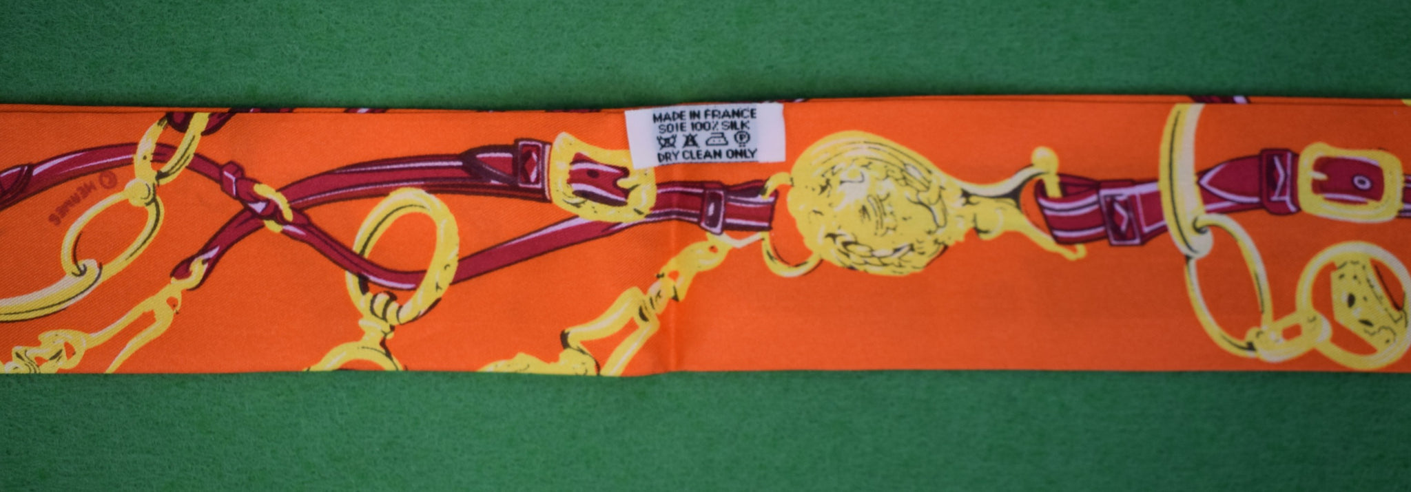 Hermès Paris Brides de Gala Orange Silk Scarf Belt w/ Asprey Tan Alligator Leather Buckle Made In Italy (New w/ Box)