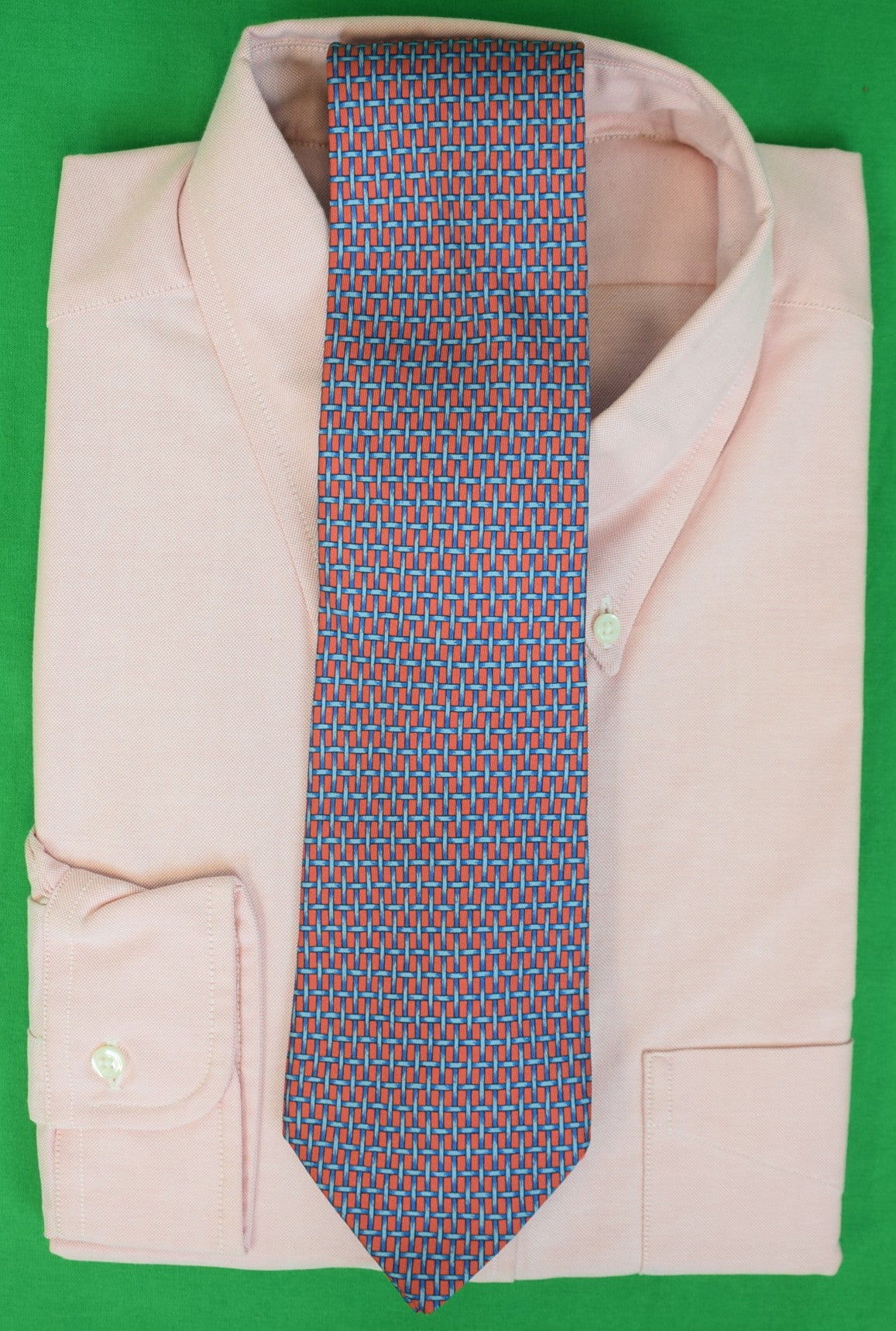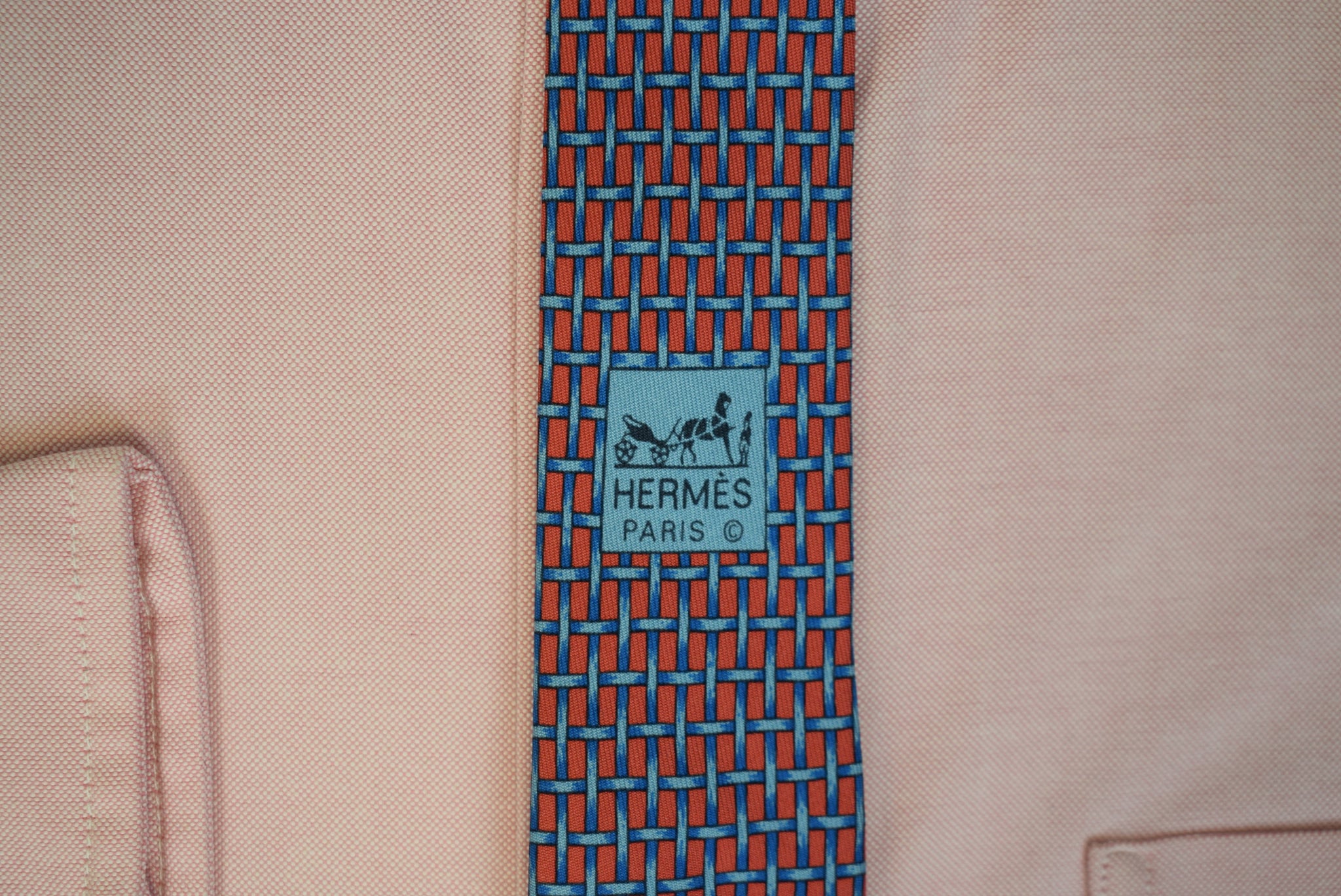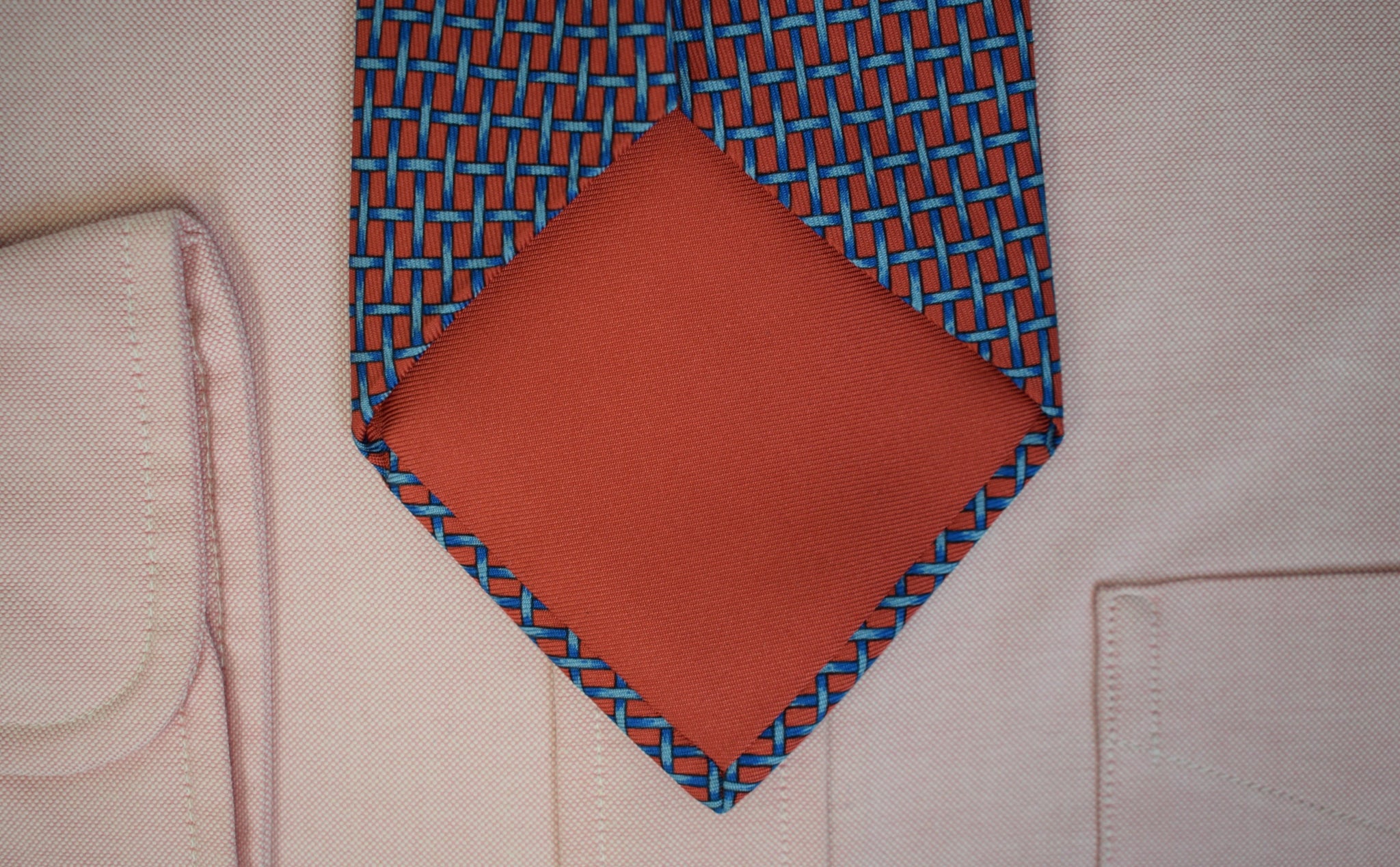 Hermès Paris Red/ Blue Graph Check Silk Tie