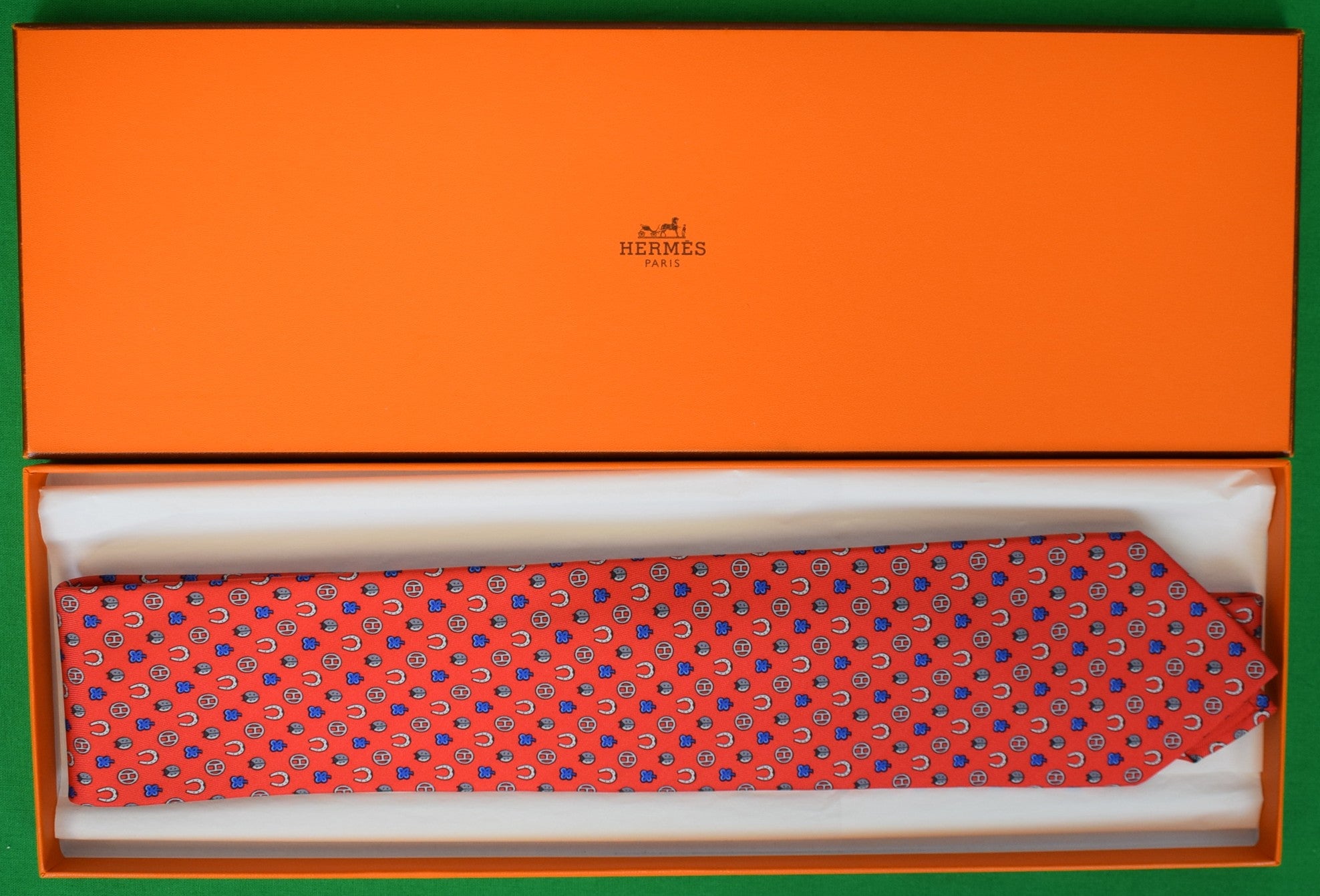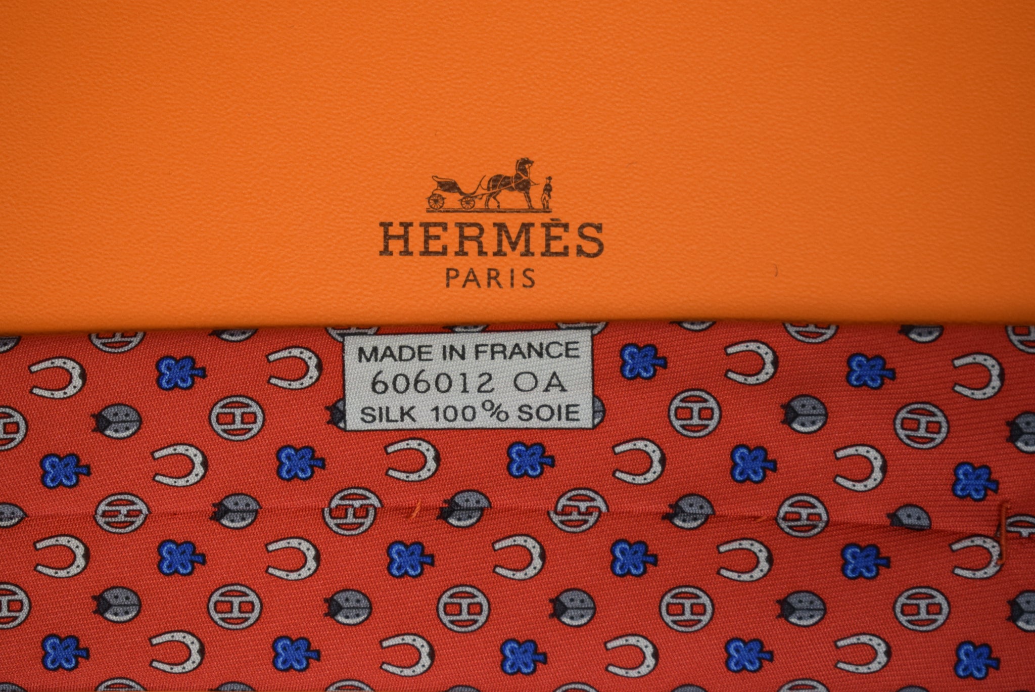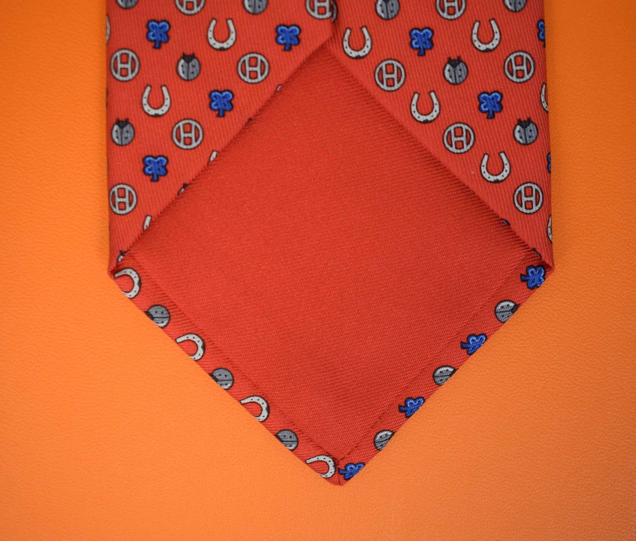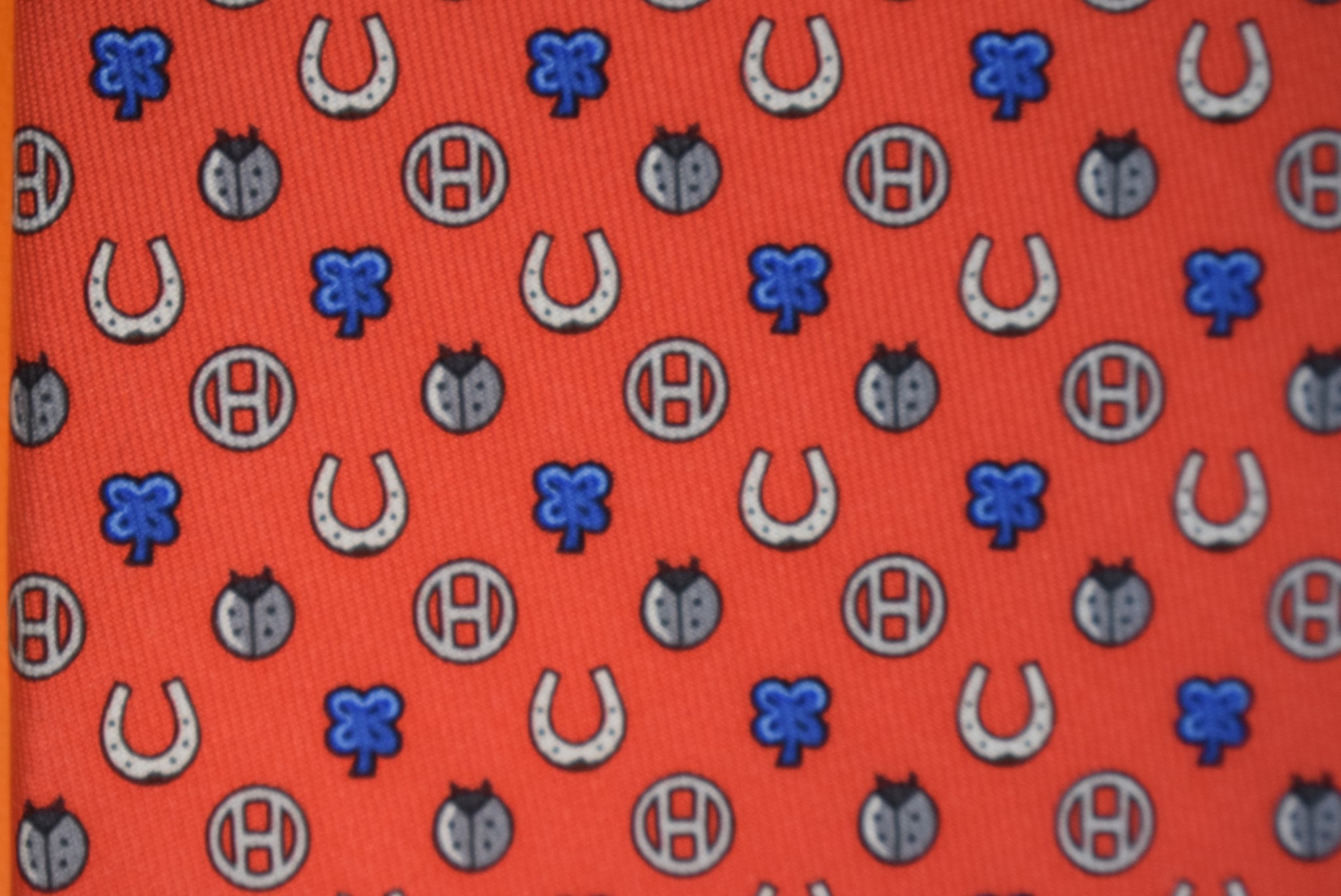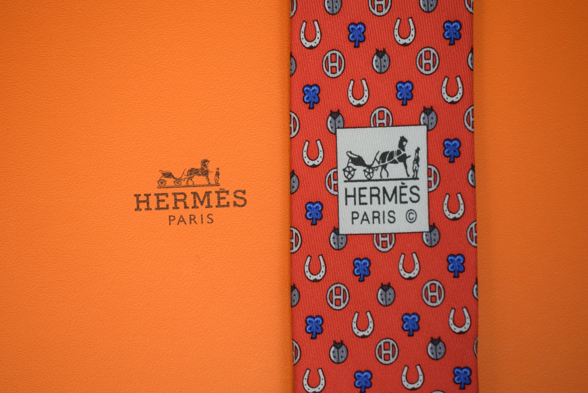 Hermès Paris Red Horseshoe/ Ladybug Silk Print Tie (New w/ 'H' Box)