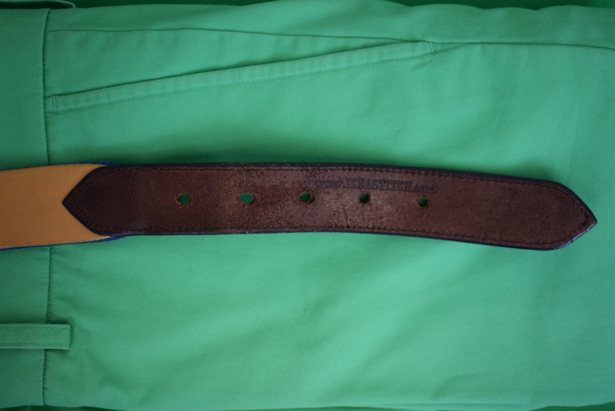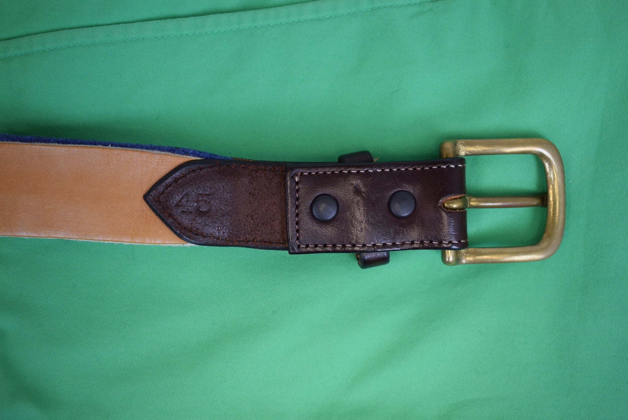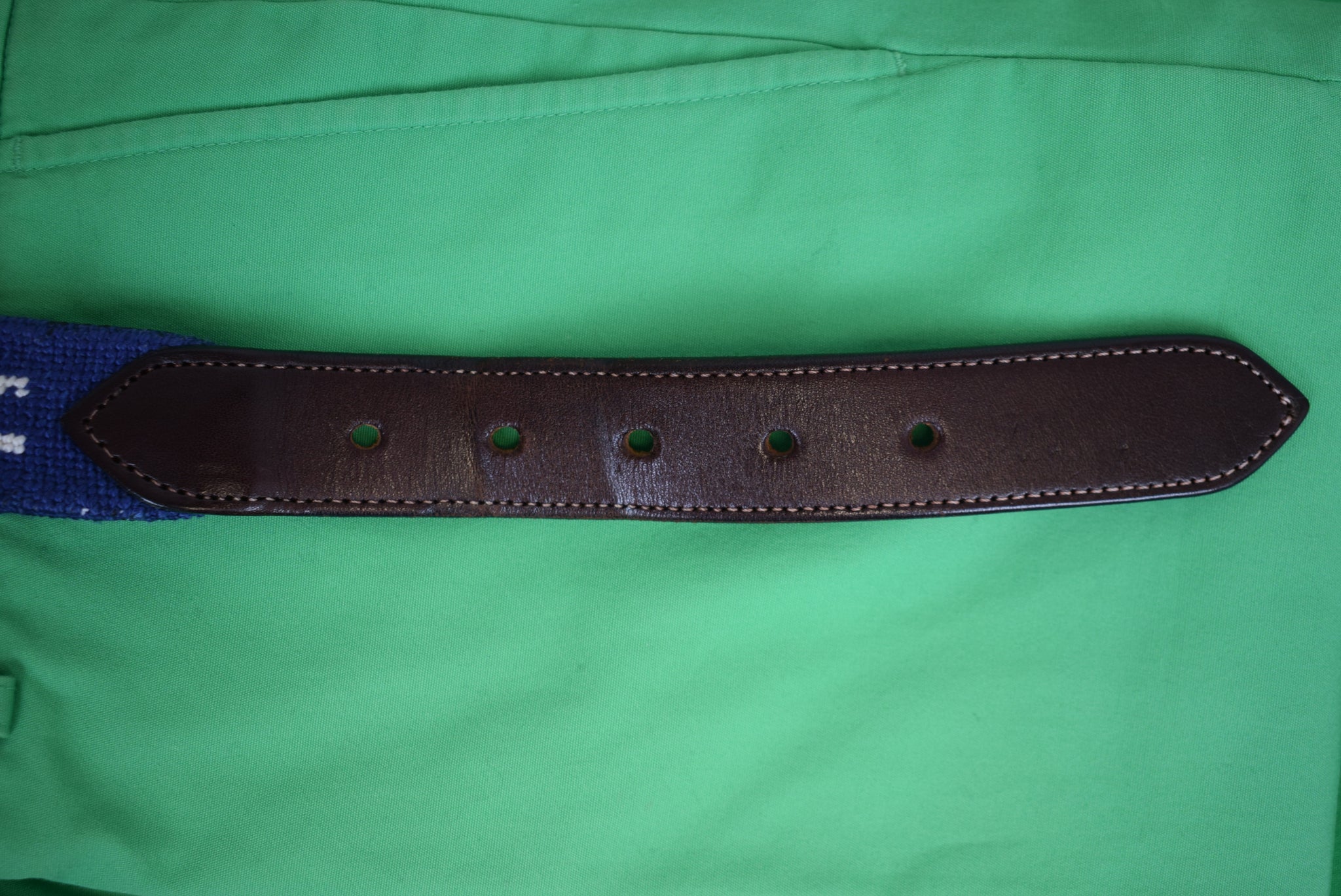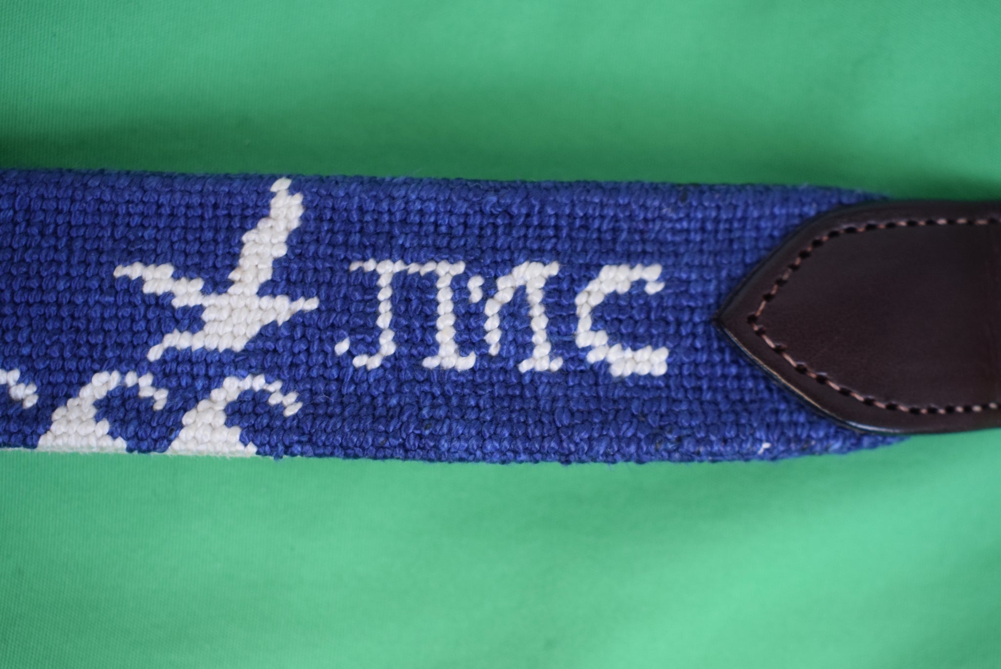 Itz A Stitch Hand-Stitched Needlepoint Belt Royal Blue w/ White Ocean Waves & Seagulls Sz 45