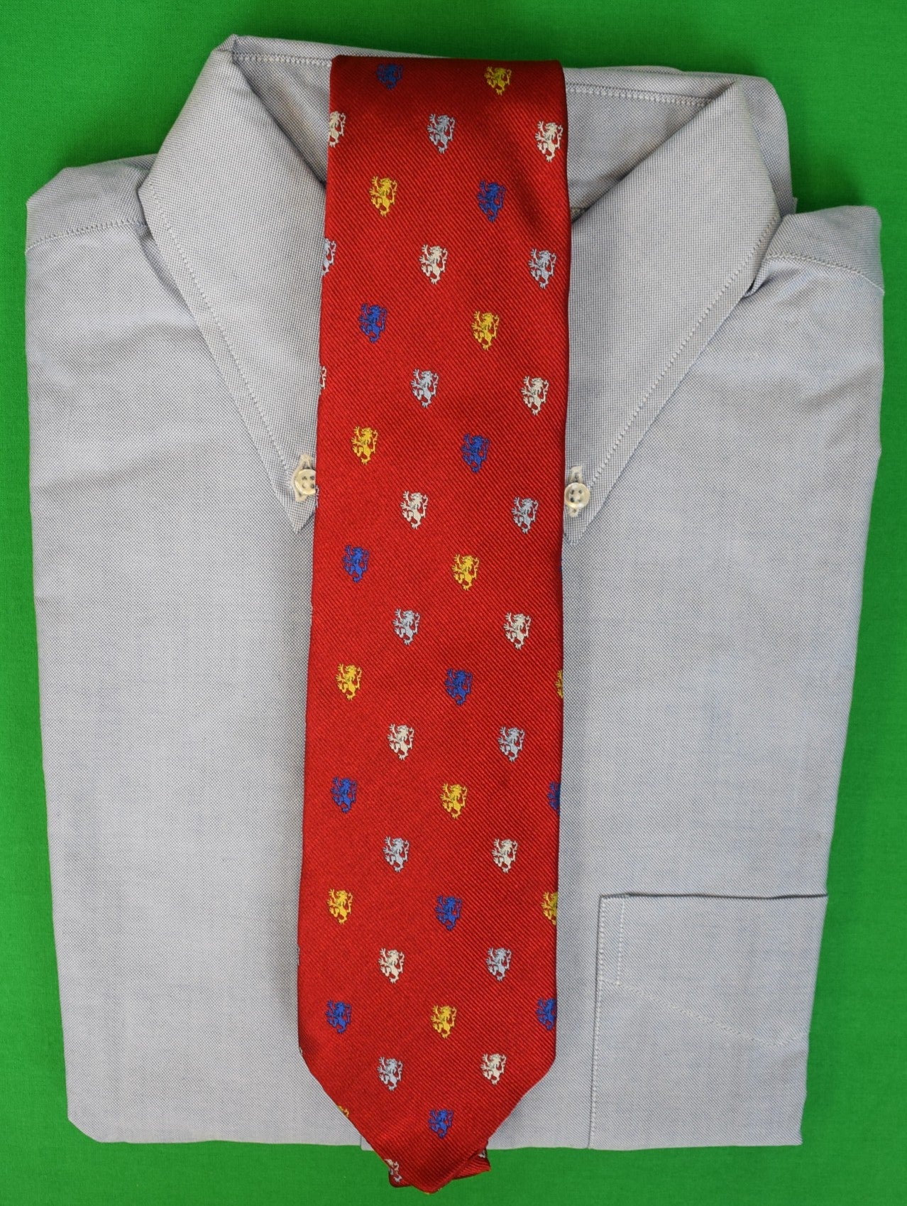 J. Press Red Silk Club Tie w/ Heraldic Rampants