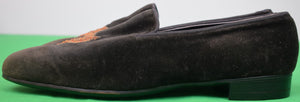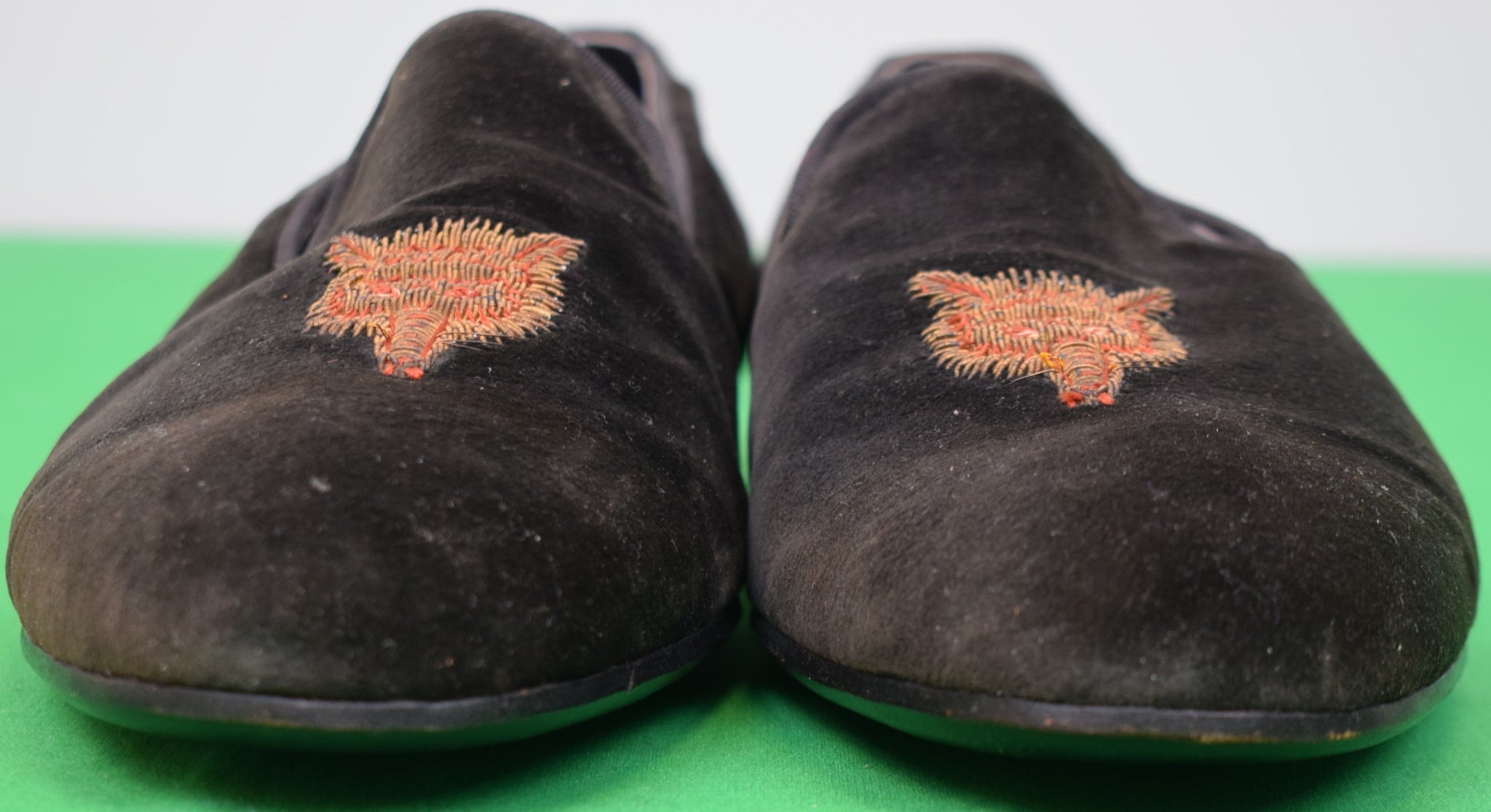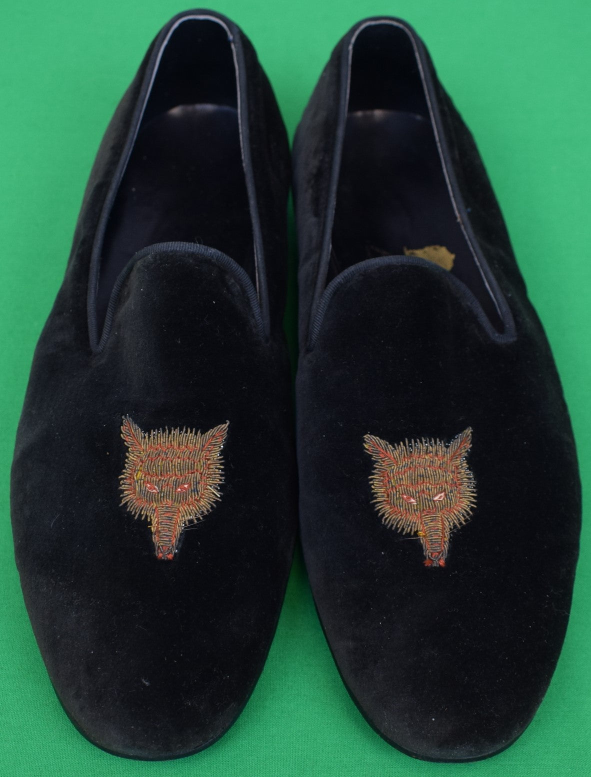 "John Lobb London Black Velvet w/ Bullion Fox Mask Prince Albert Slippers"