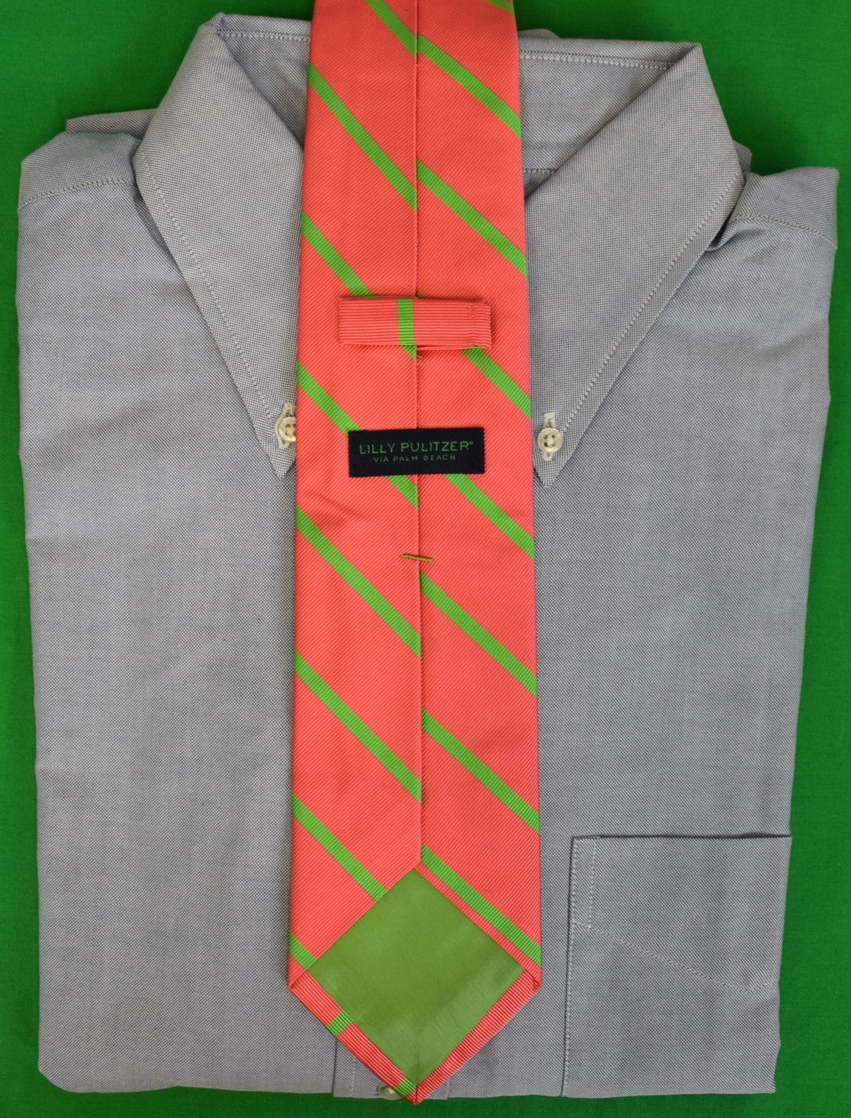 Lilly Pulitzer Pink w/ Lime Green Repp Stripe Silk Club Tie (LNWOT)