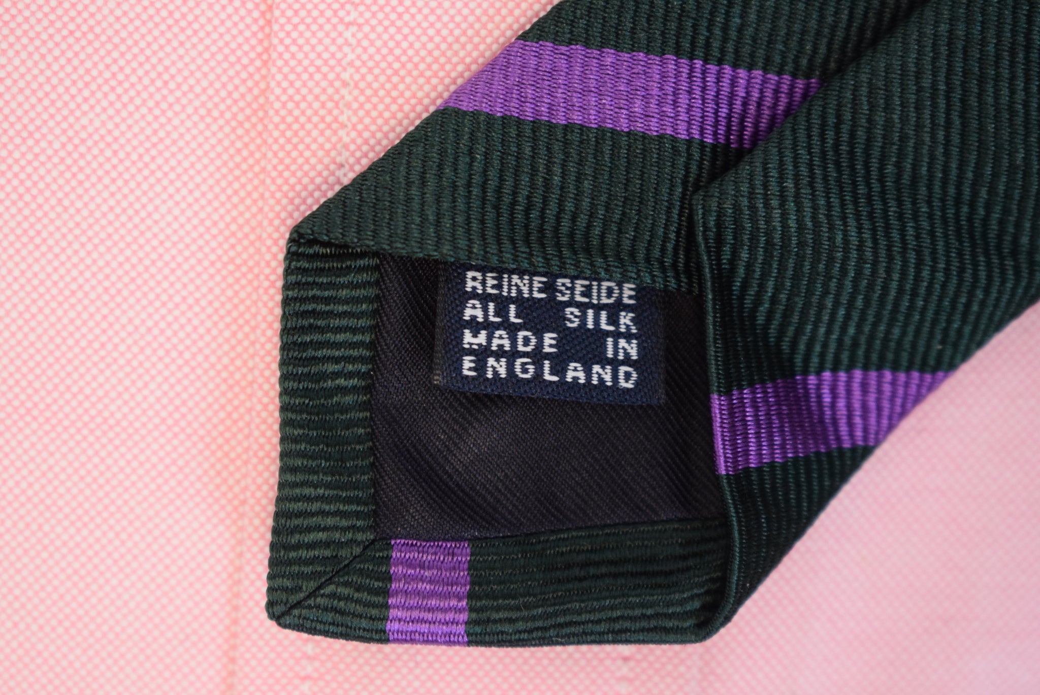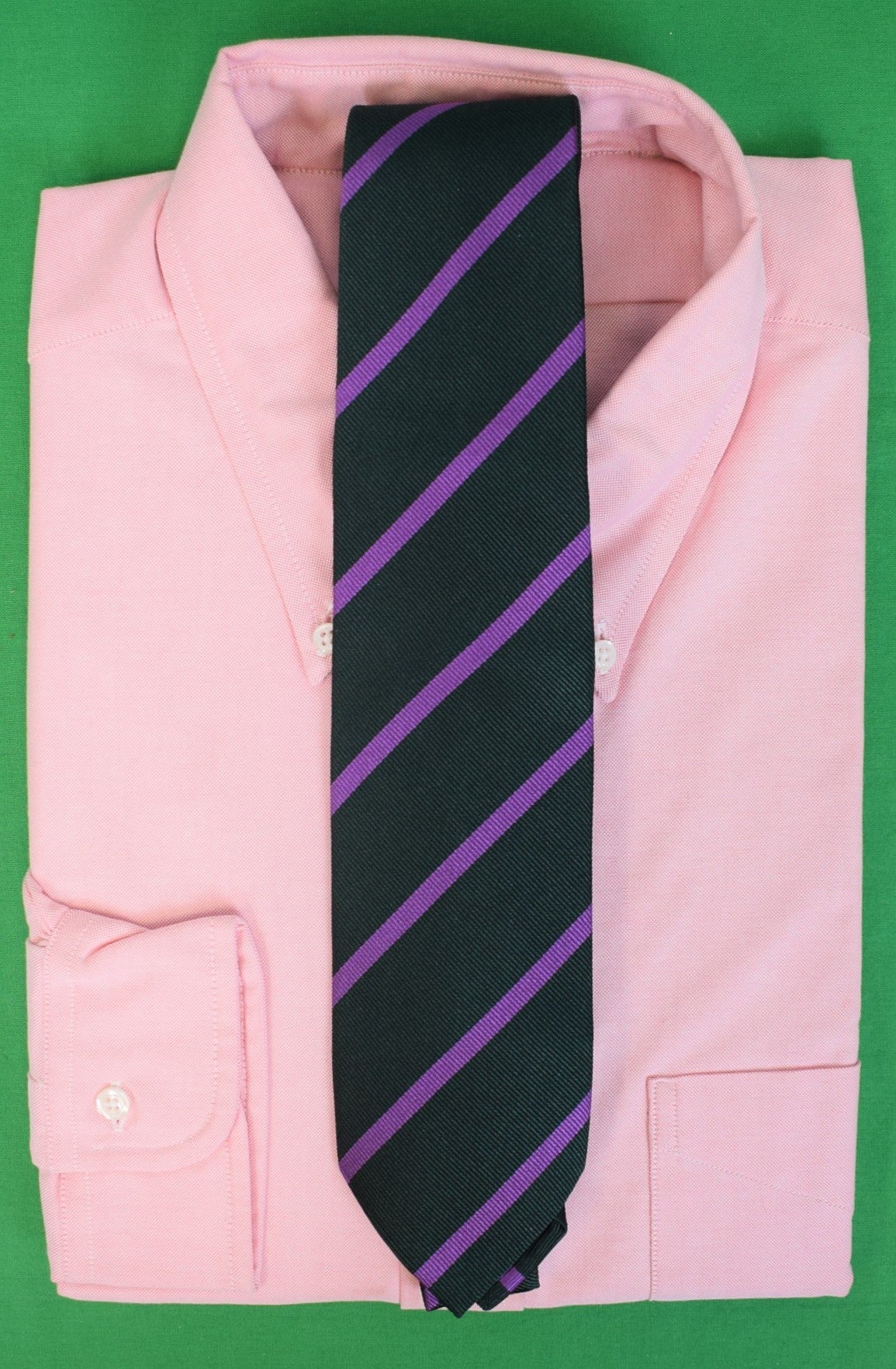 "Michael J. Drake x Archive Collection Hunter Green w/ Purple Repp Stripe Silk Club Tie"