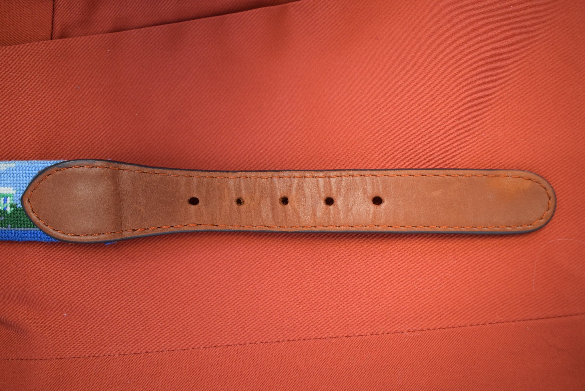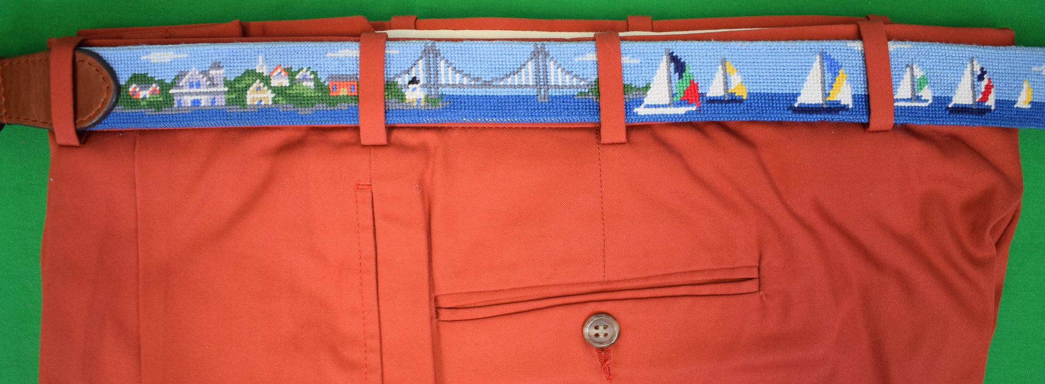 "Newport R.I. Harbor Scene Hand Needlepoint Men’s Belt by Smathers & Branson" Sz 36