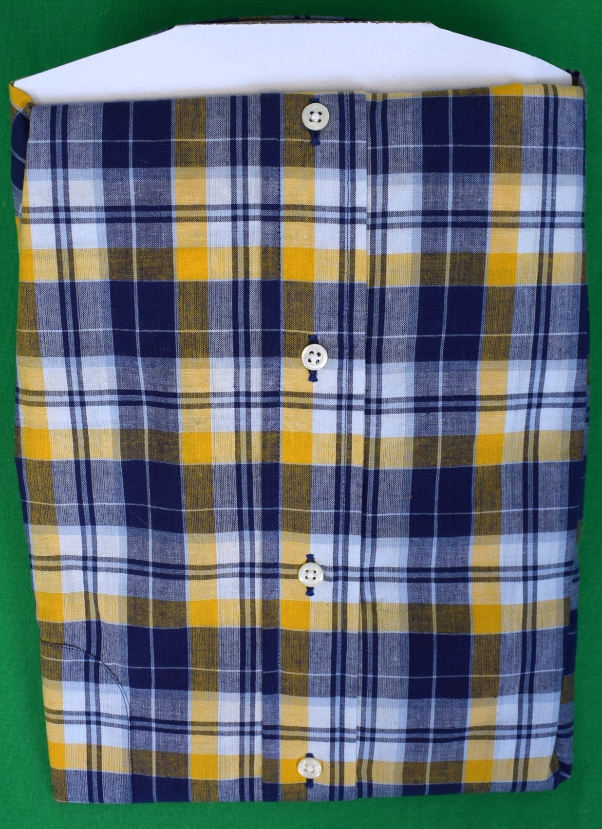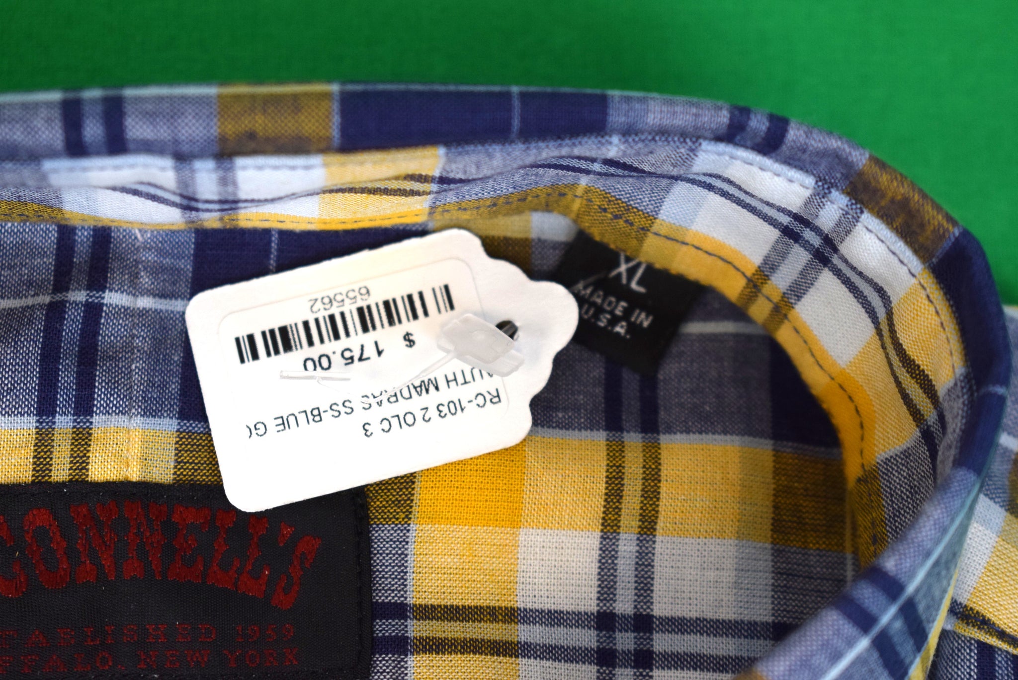 O'Connell's Authentic India Madras - Short Sleeve Shirt Blue Yellow Plaid Sz XL (NWT)
