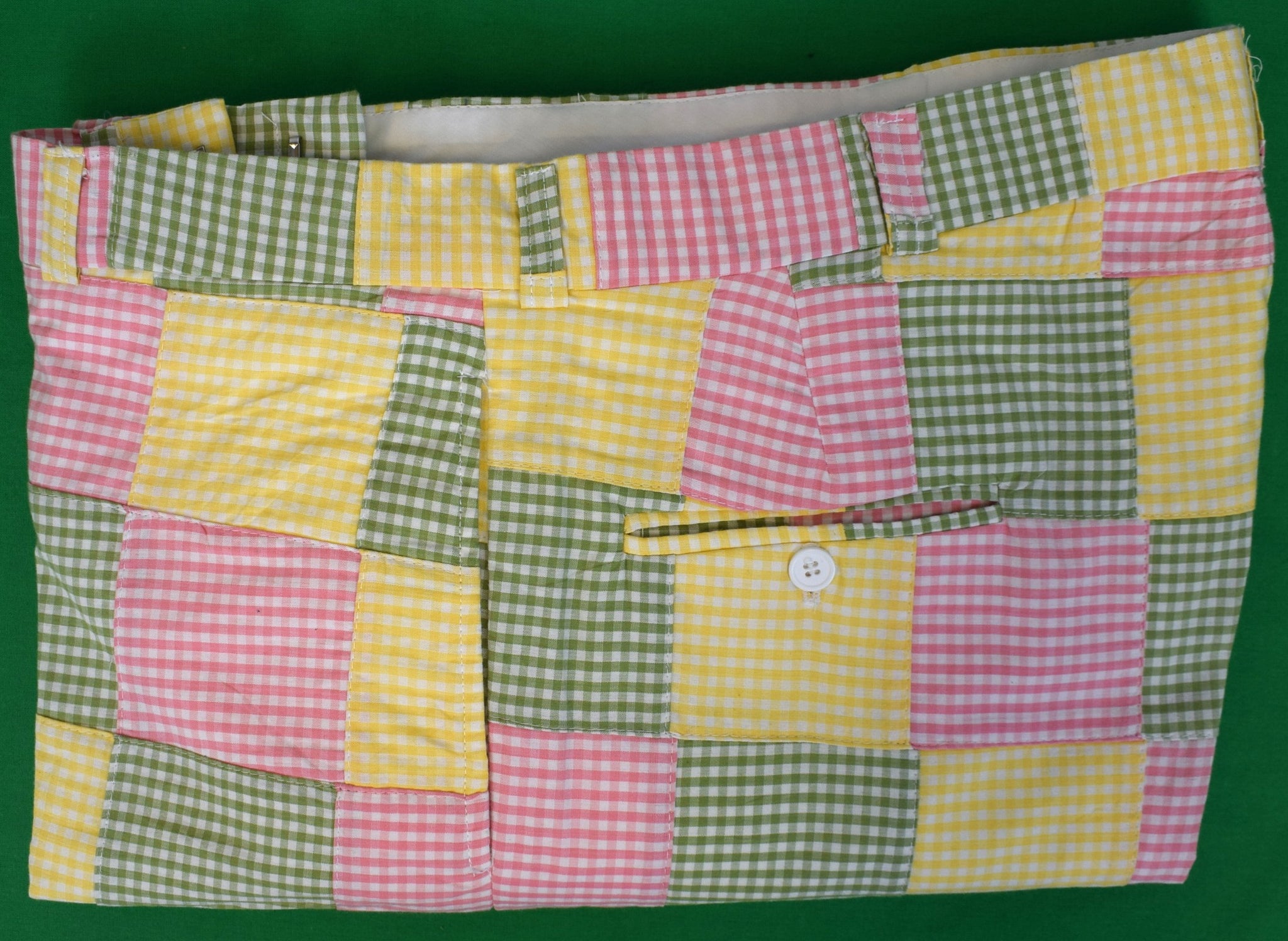 "O'Connell's Vintage Patch Panel Pink/ Green/ Yellow Gingham Check Trousers" Sz 40 (NWOT)