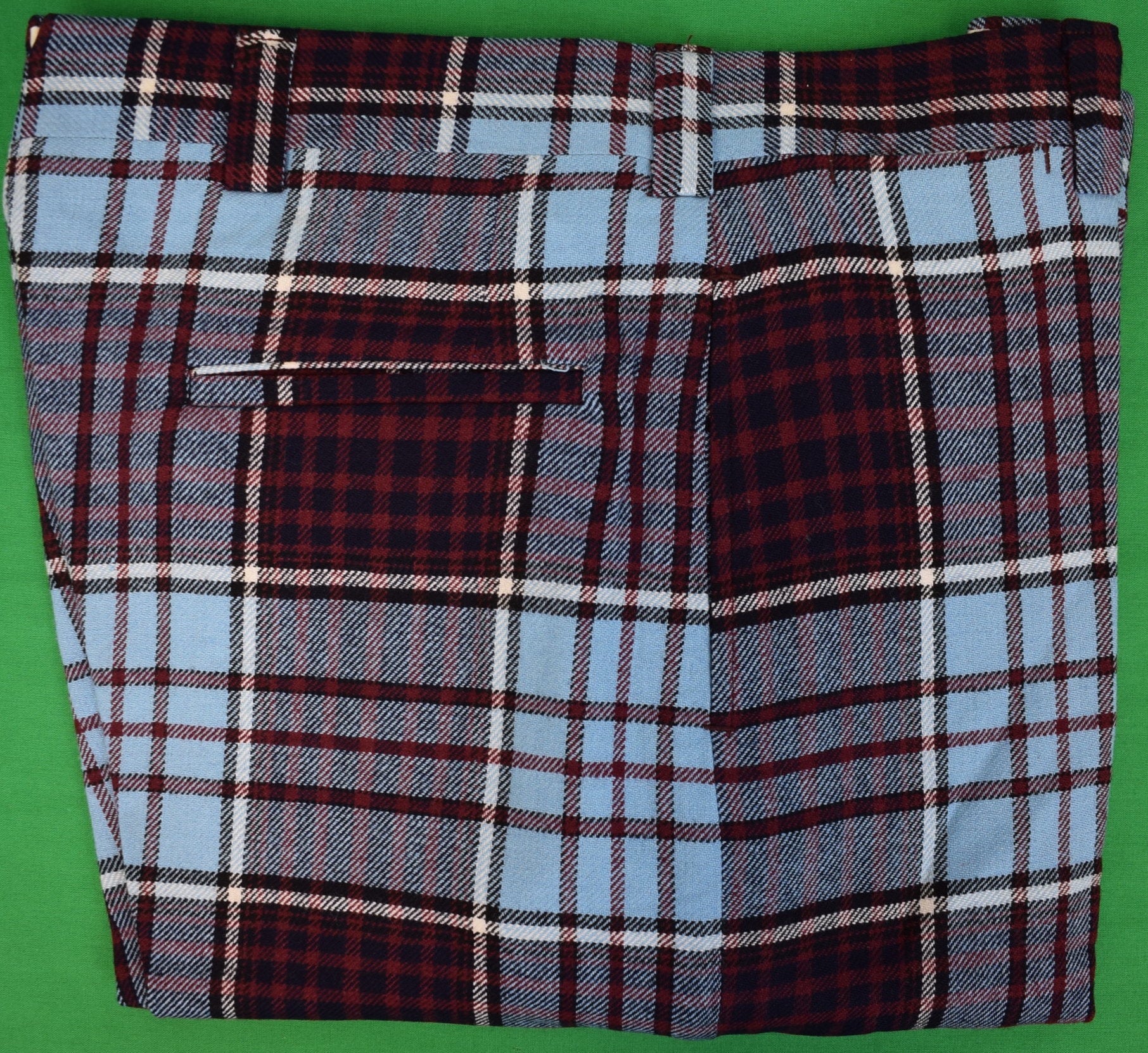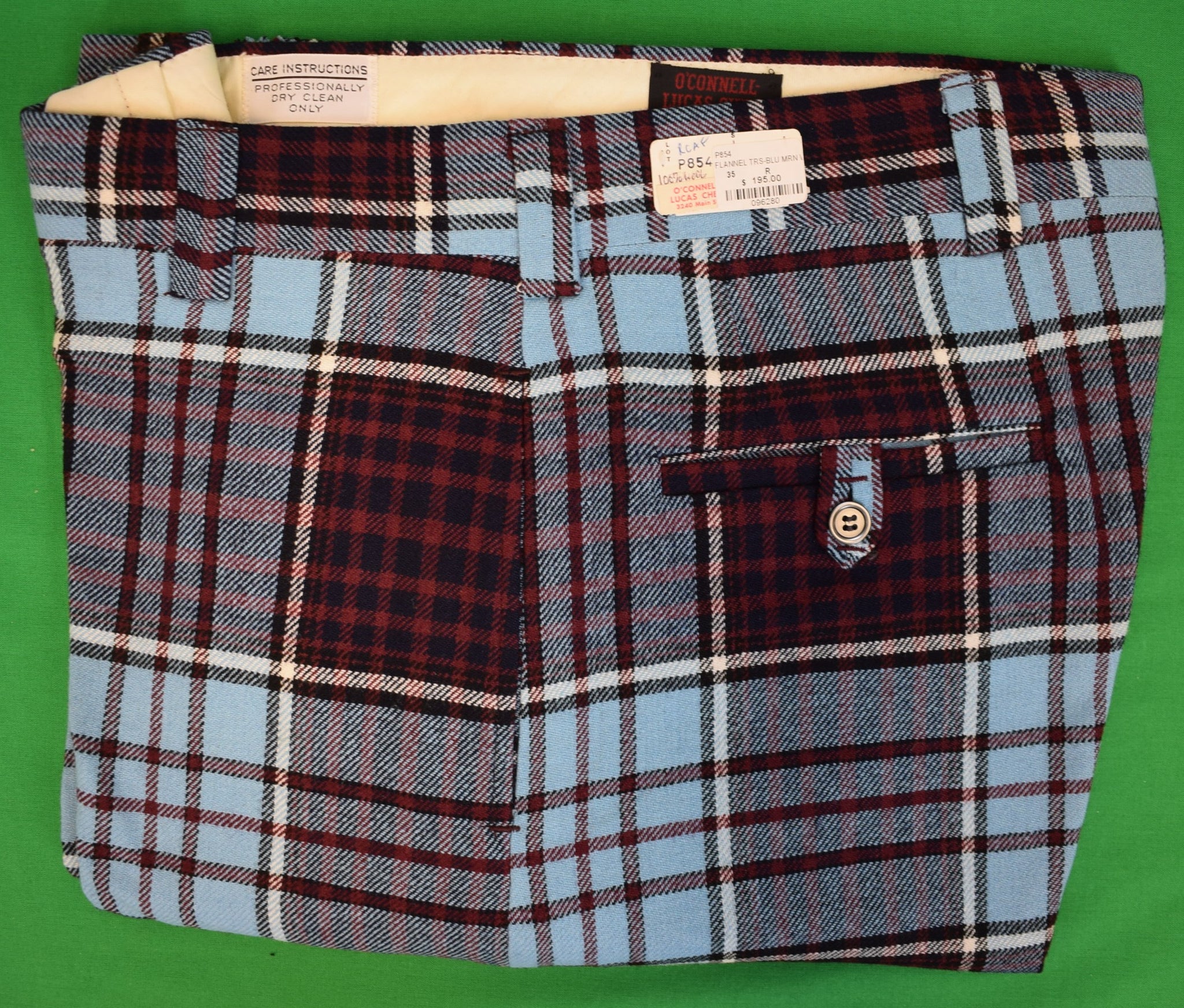 "O'Connell's Vintage Blue/ Maroon/ White Plaid Flannel Trousers" Sz 35 (NOS)
