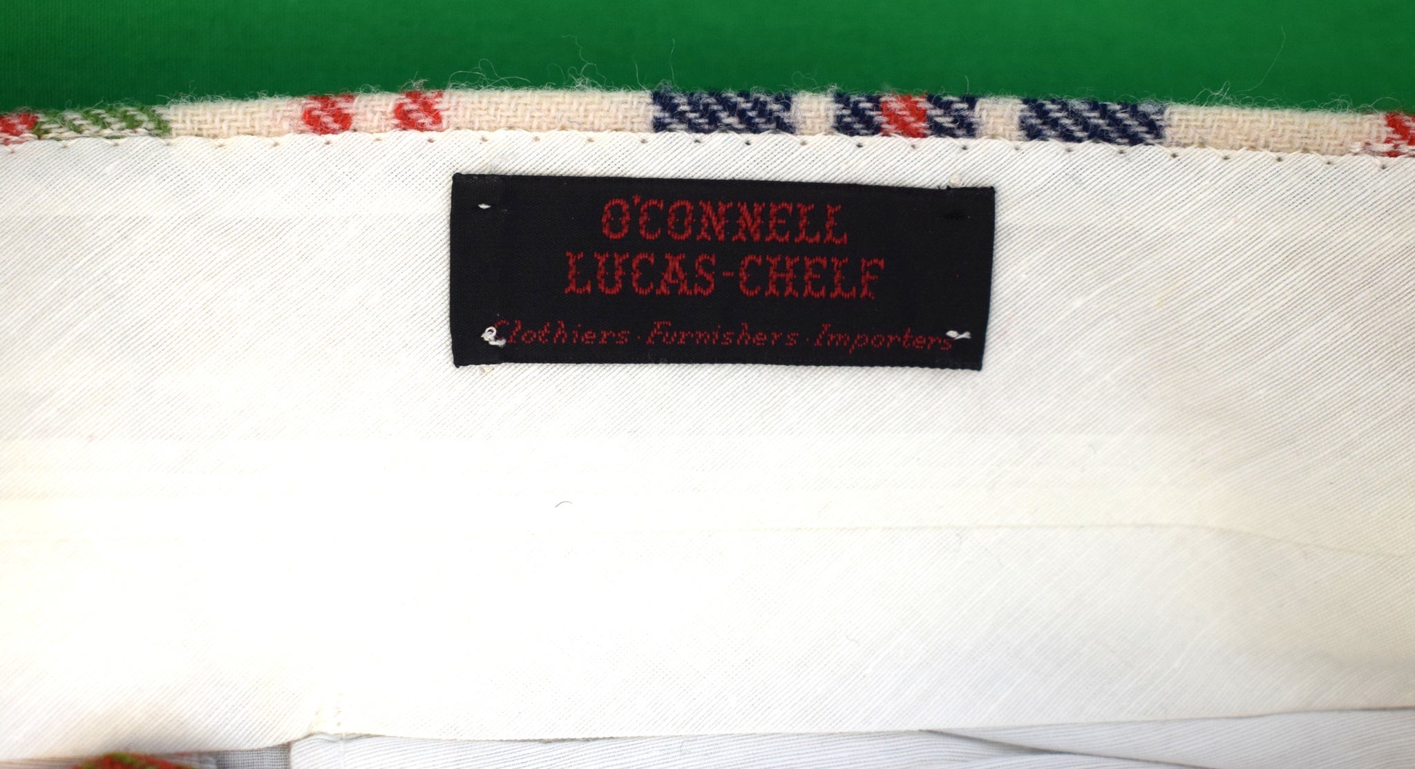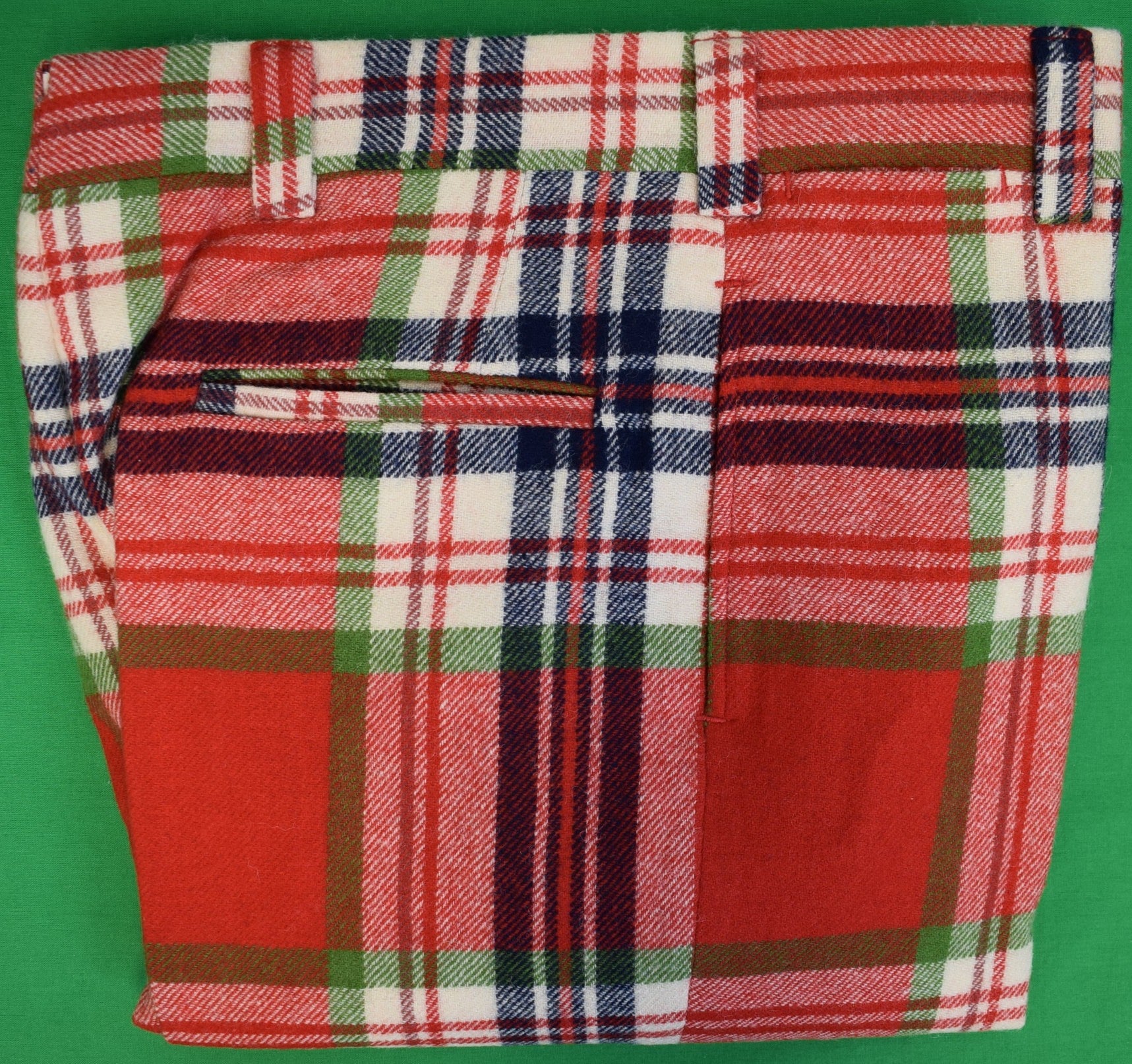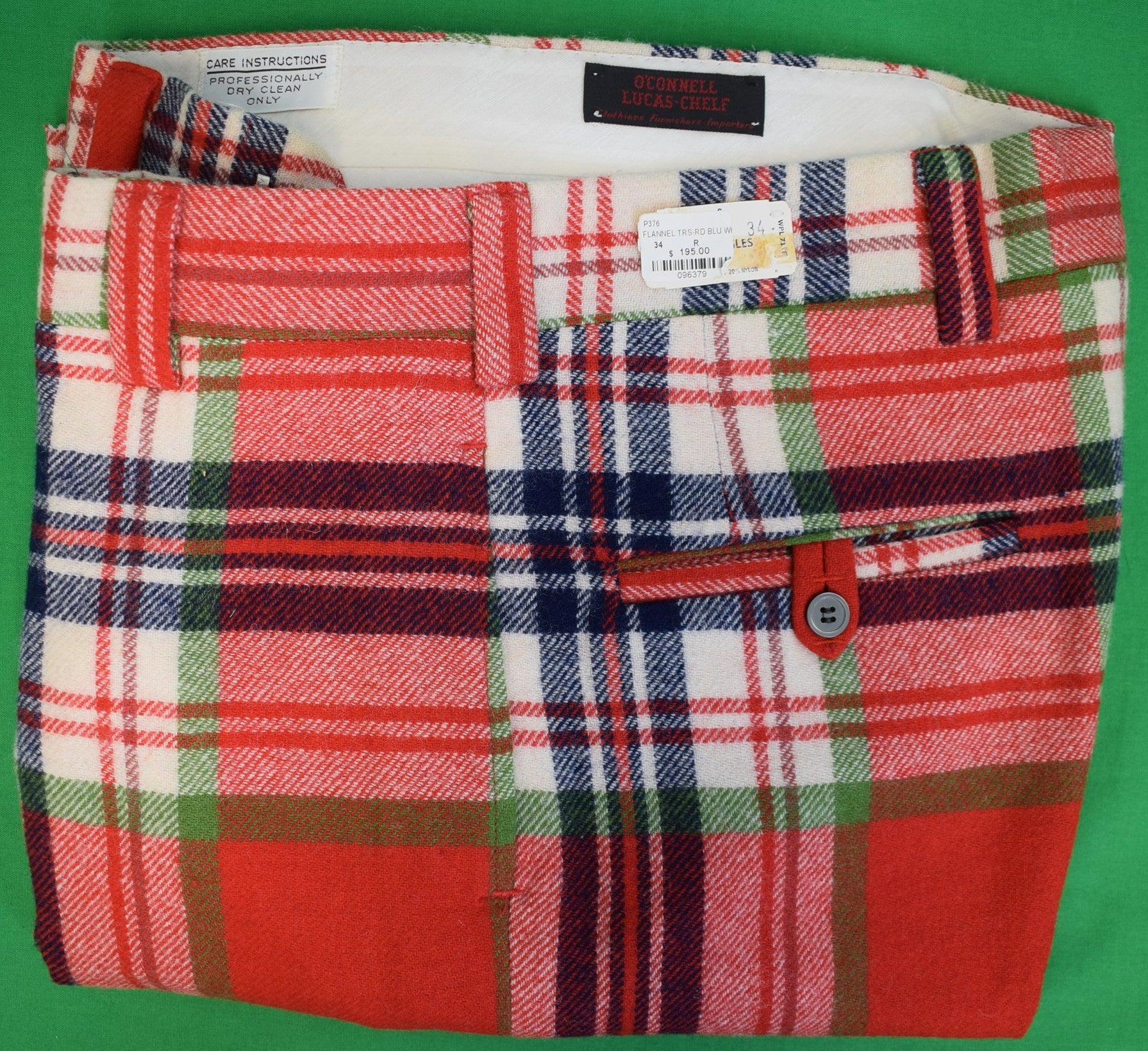 "O'Connell's Vintage Wool Red/ Blue/ White Plaid Flannel Trousers" Sz 34 (NOS)