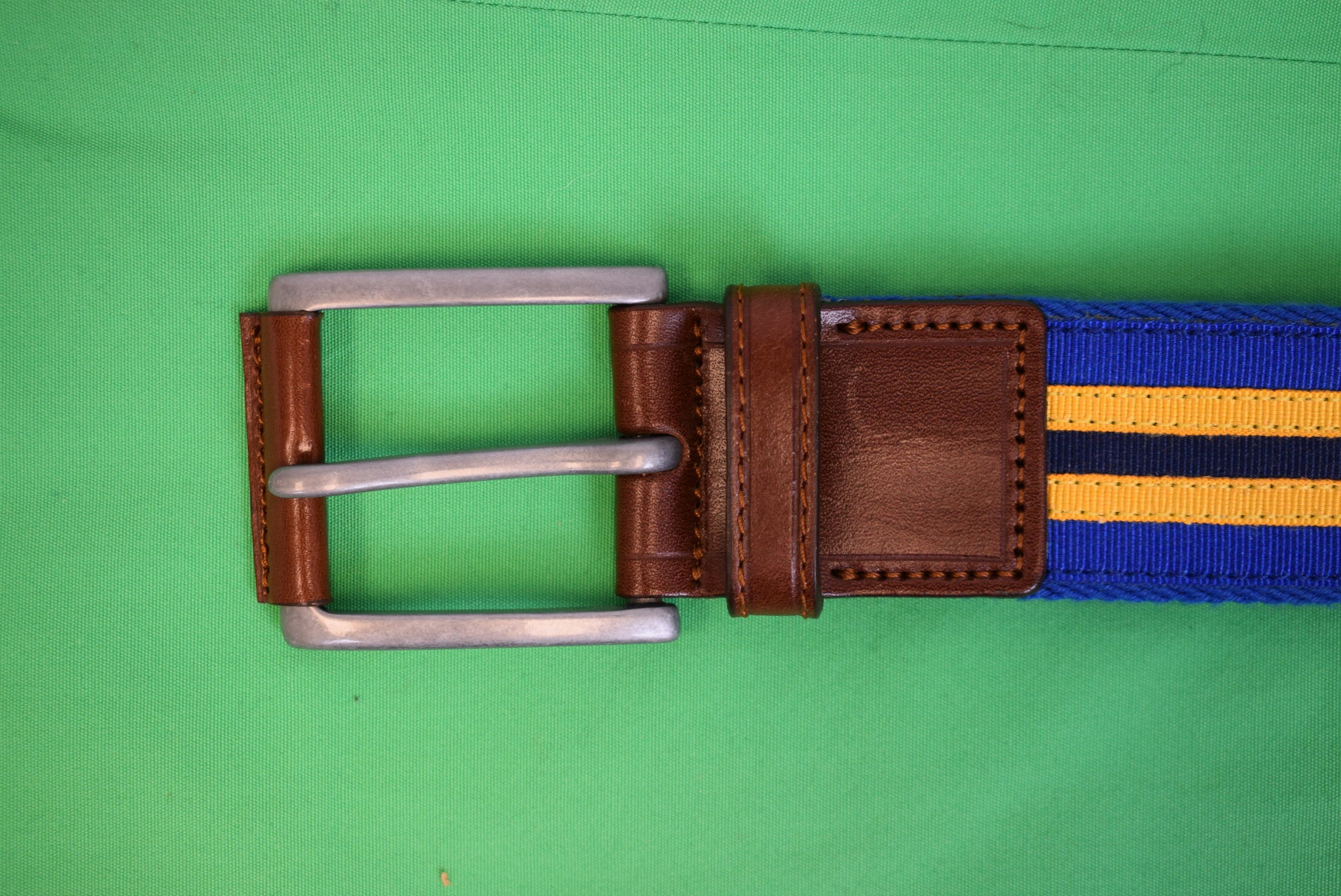 "Peter Elliot Regimental Polo Club Royal Blue w/ Yellow Grosgrain Repp Stripe #4 Belt" Sz 42