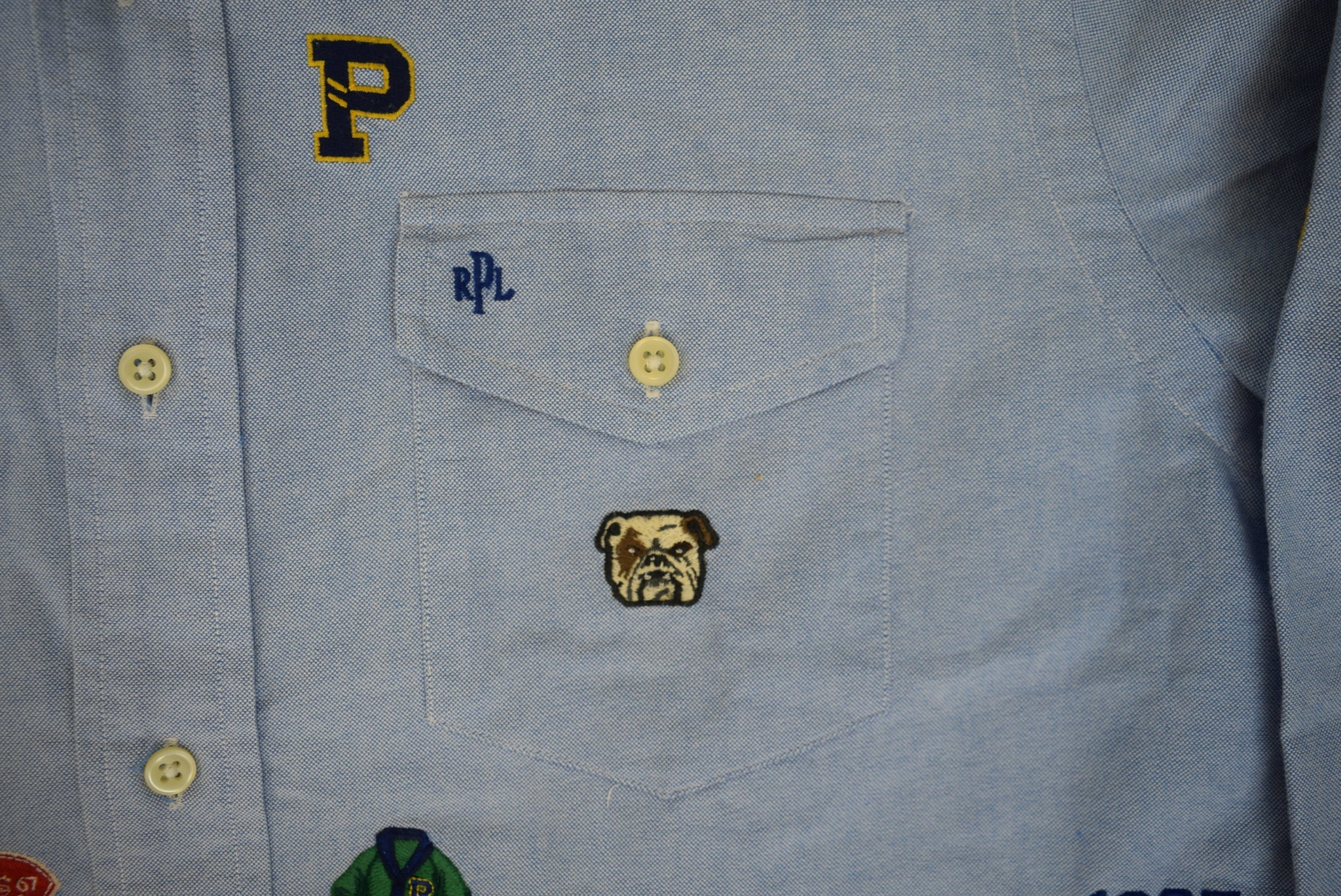 Polo Ralph Lauren Blue OCBD Shirt w/ Patch Embroidered Icons Sz M (NWOT)