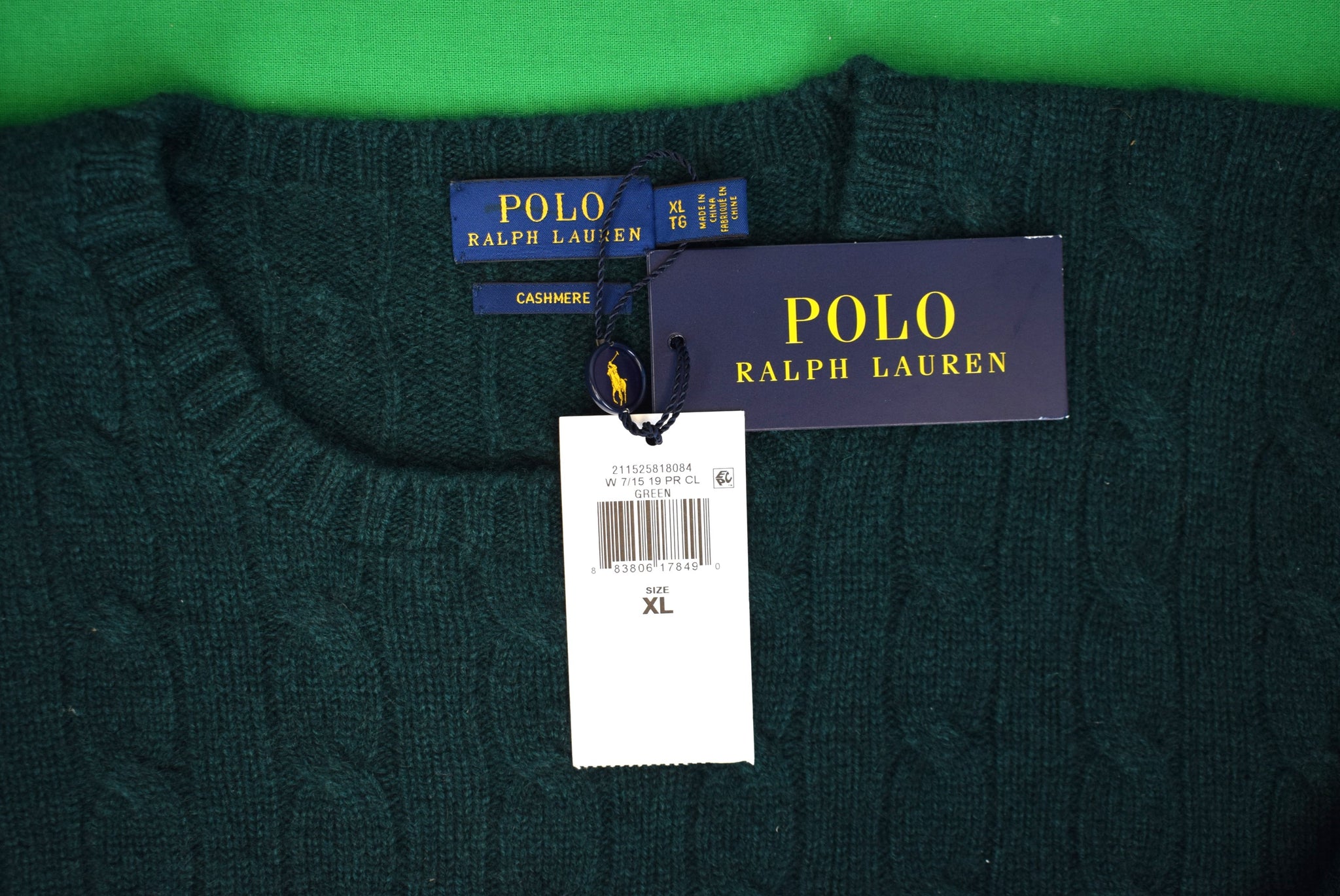 Polo Ralph Lauren Ladies Bottle Green Cashmere Cable Crew Neck Sweater Sz XL (NWT)