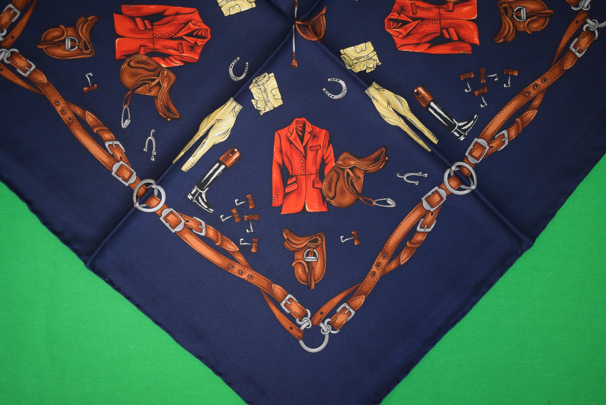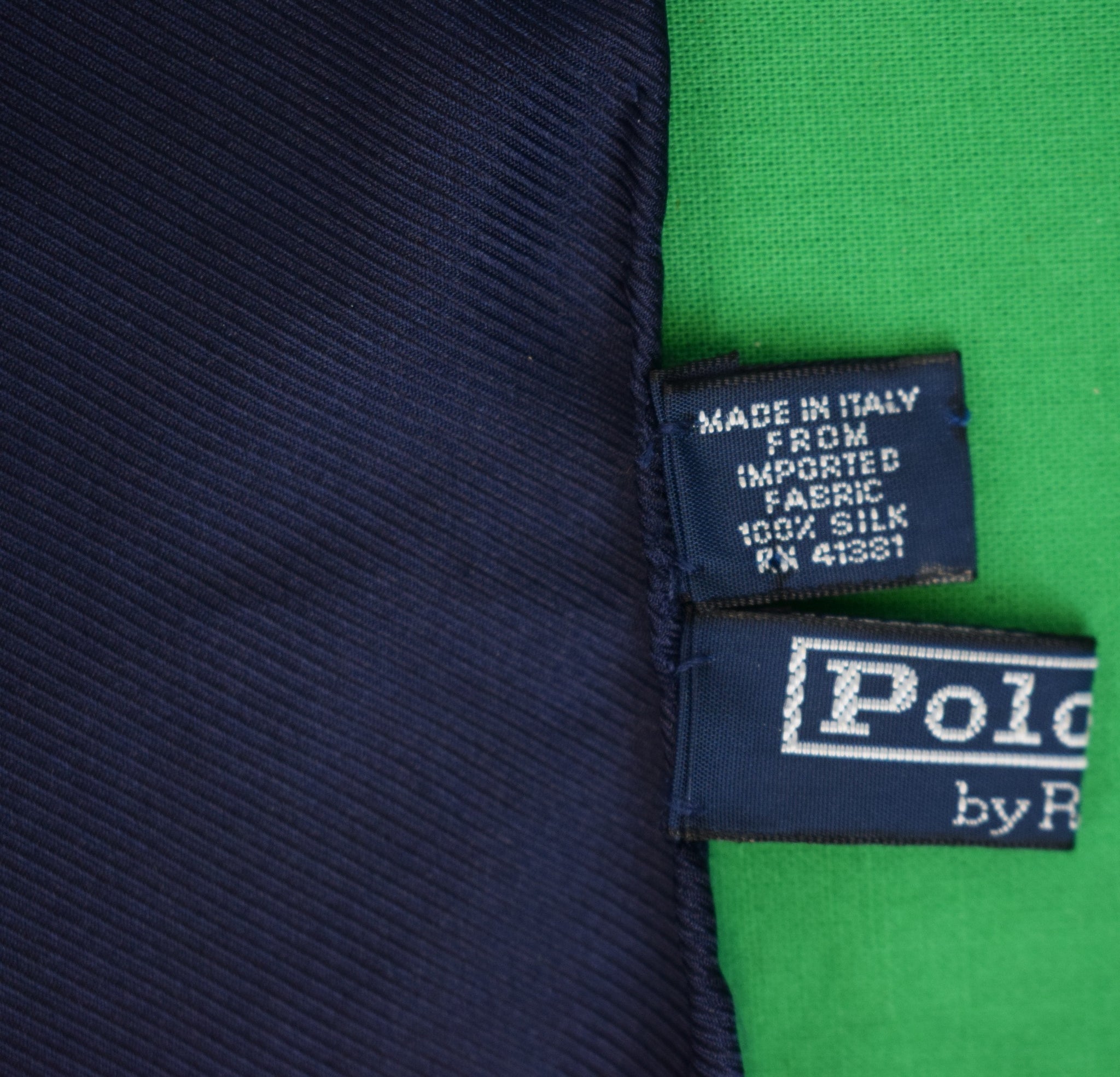 Polo Ralph Lauren Navy Italian Silk Equestrian Theme Pocket Square
