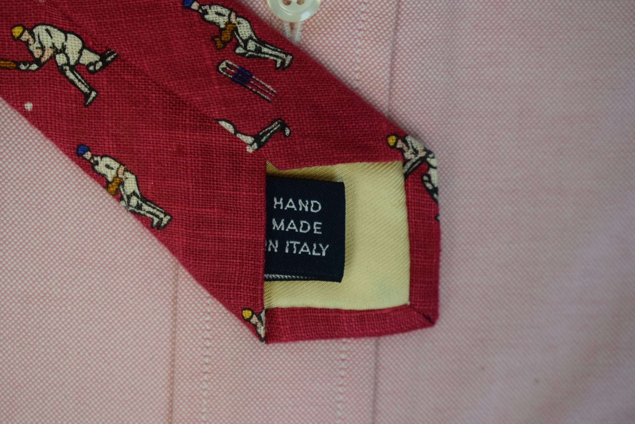 "Polo Ralph Lauren Red Italian Linen Croquet Player Club Tie"