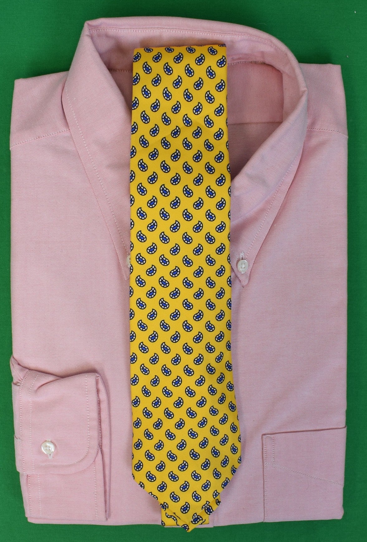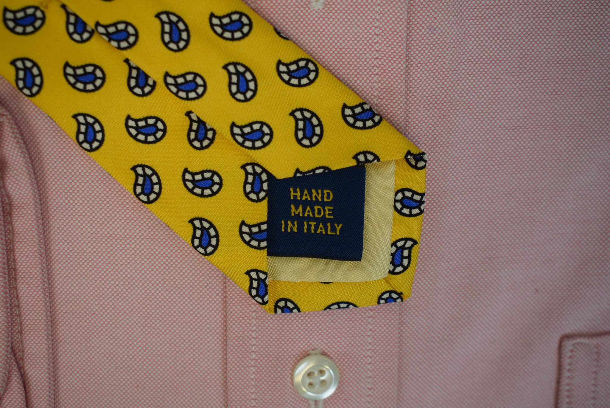 "Polo Ralph Lauren Yellow Italian Silk w/ Blue Foulard Print Club Tie"