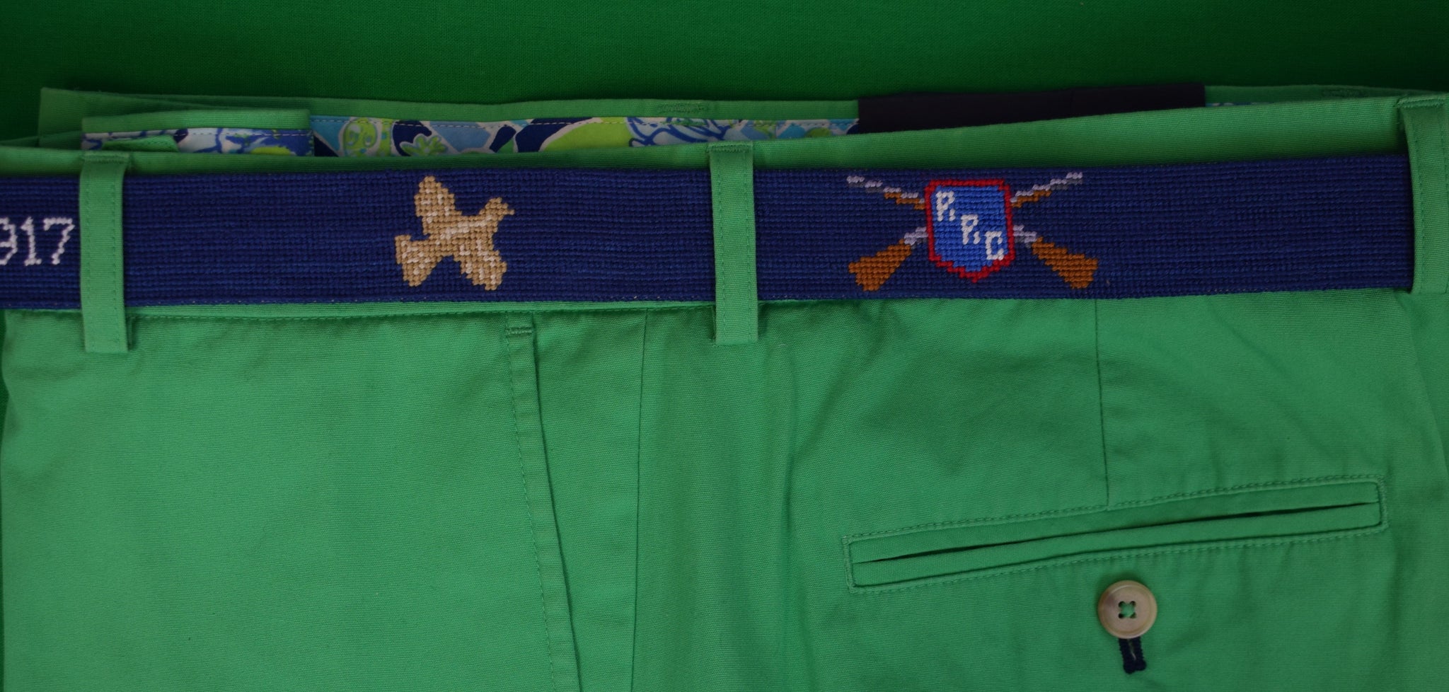 Show off your favorite things in life with our iconic needlepoint belts! As elegant as they are casual, our belts are the perfect accessory to help you stand out from the crowd. Our 100% hand-stitched belt measures 1.25" in width and is lined with full grain, Italian leather and is finished with a solid brass buckle.