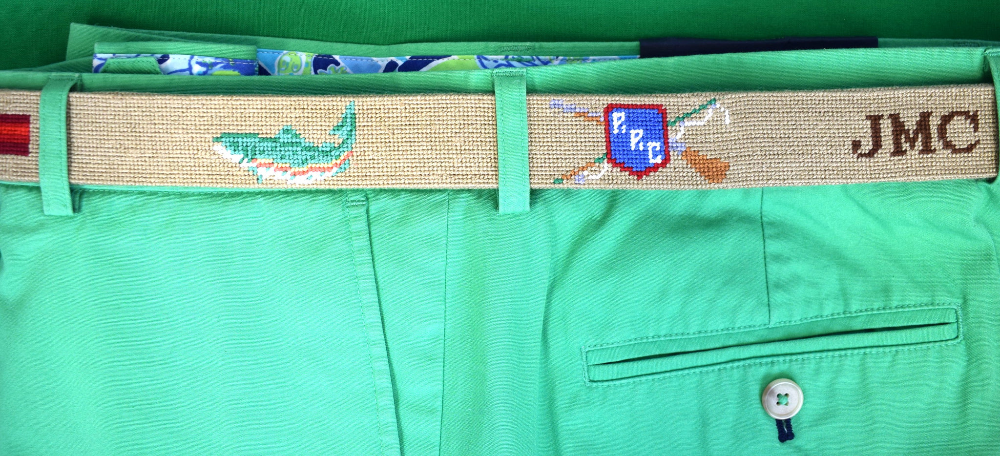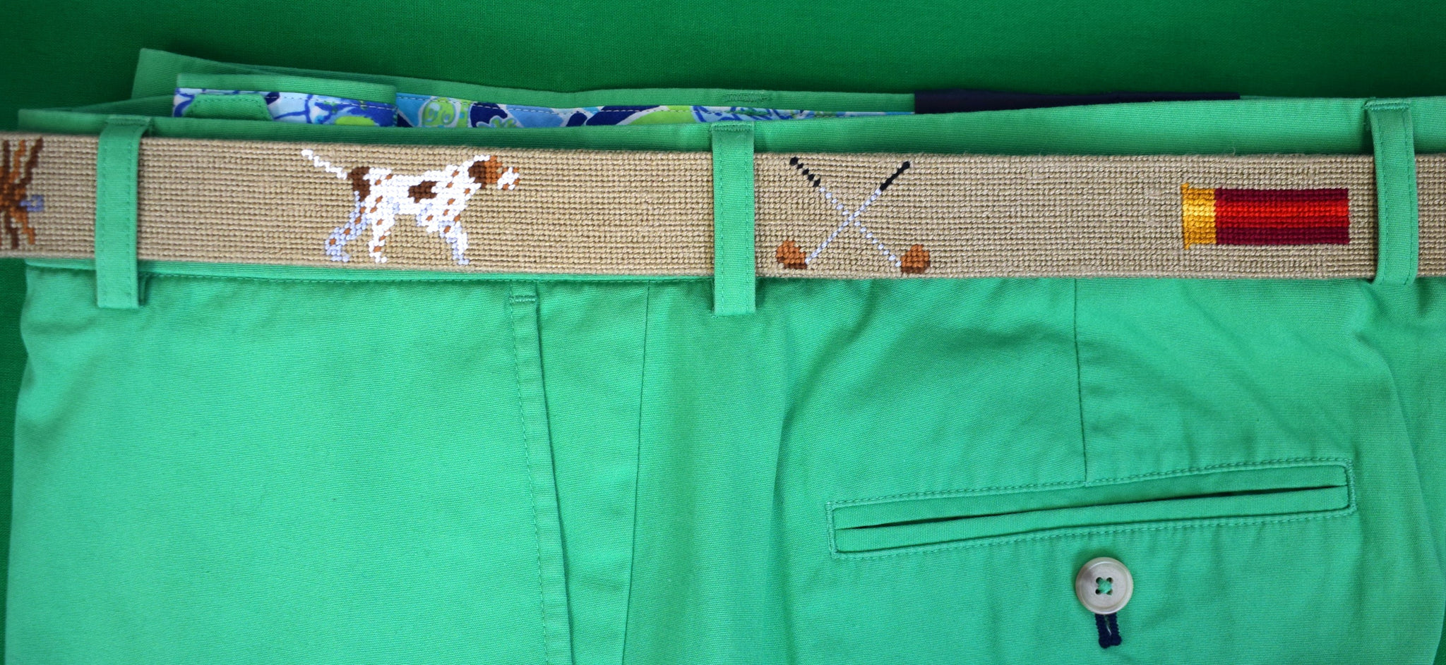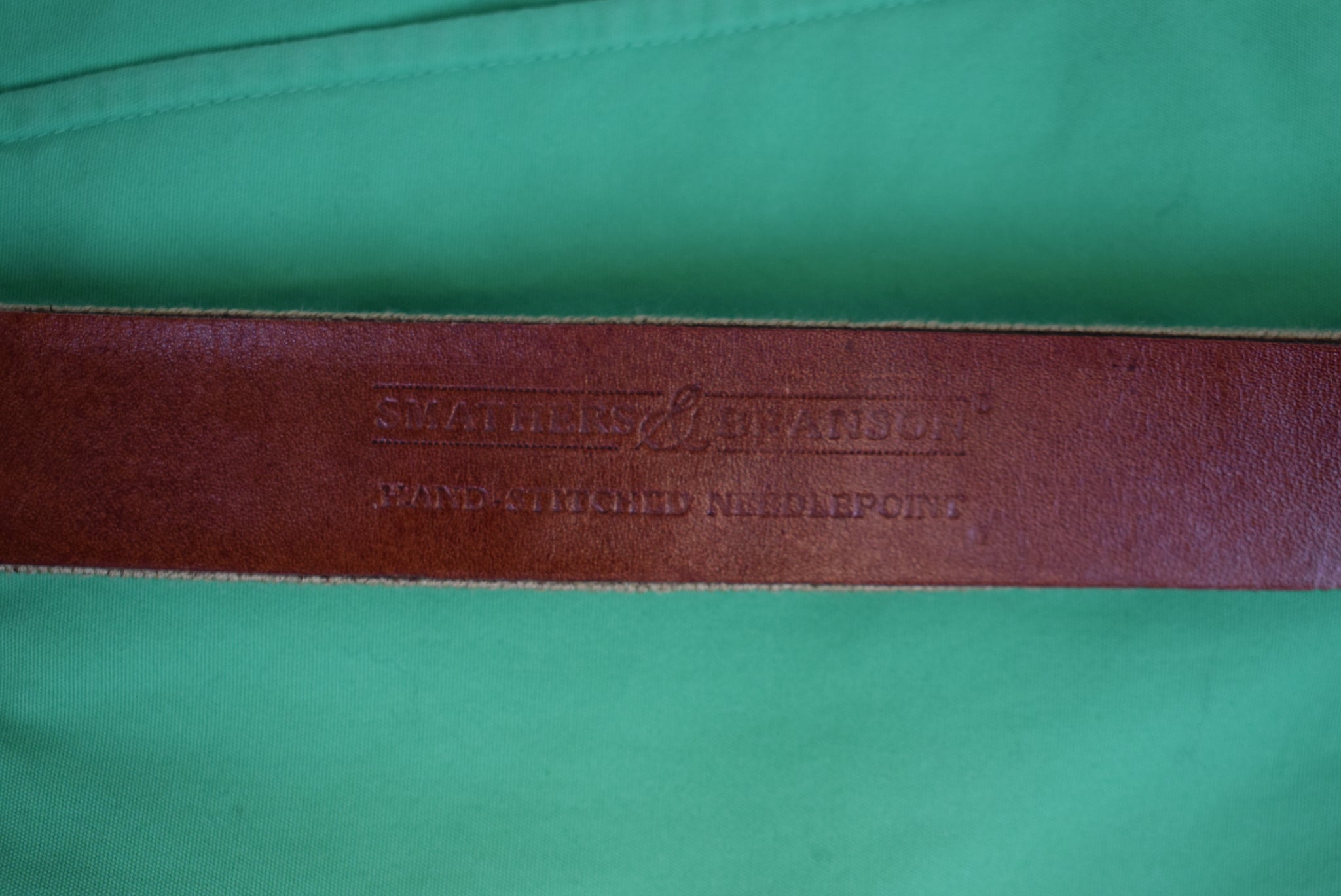 Show off your favorite things in life with our iconic needlepoint belts! As elegant as they are casual, our belts are the perfect accessory to help you stand out from the crowd. Our 100% hand-stitched belt measures 1.25" in width and is lined with full grain, Italian leather and is finished with a solid brass buckle.