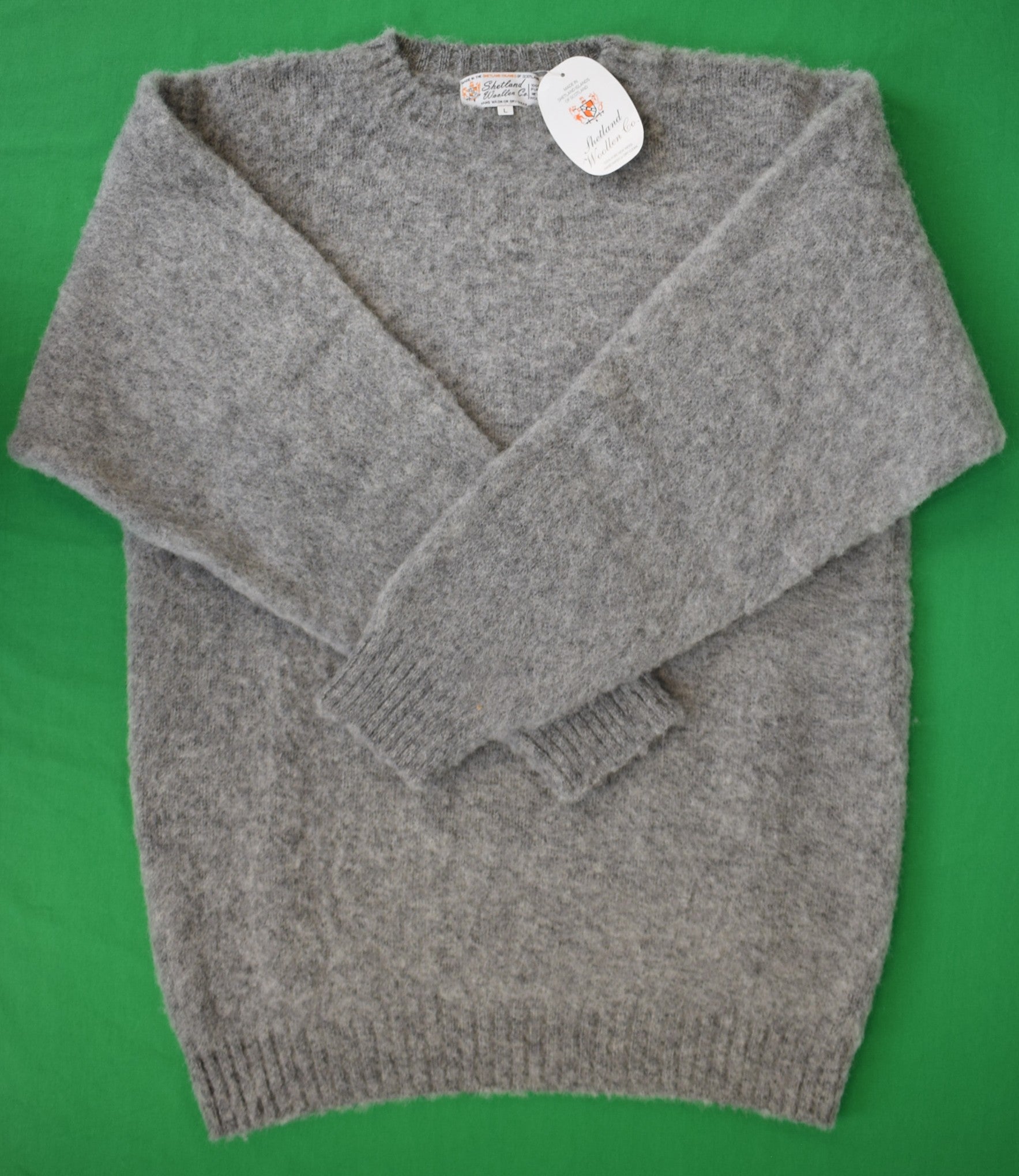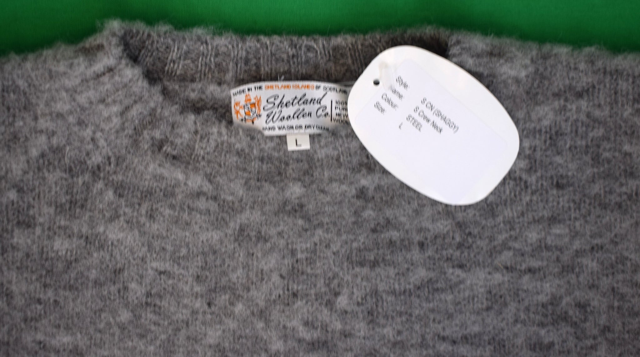 Shetland Woolen Co. Steel Grey Shaggy Dog Wool Crewneck Sweater Made In Scotland Sz L (NWT)