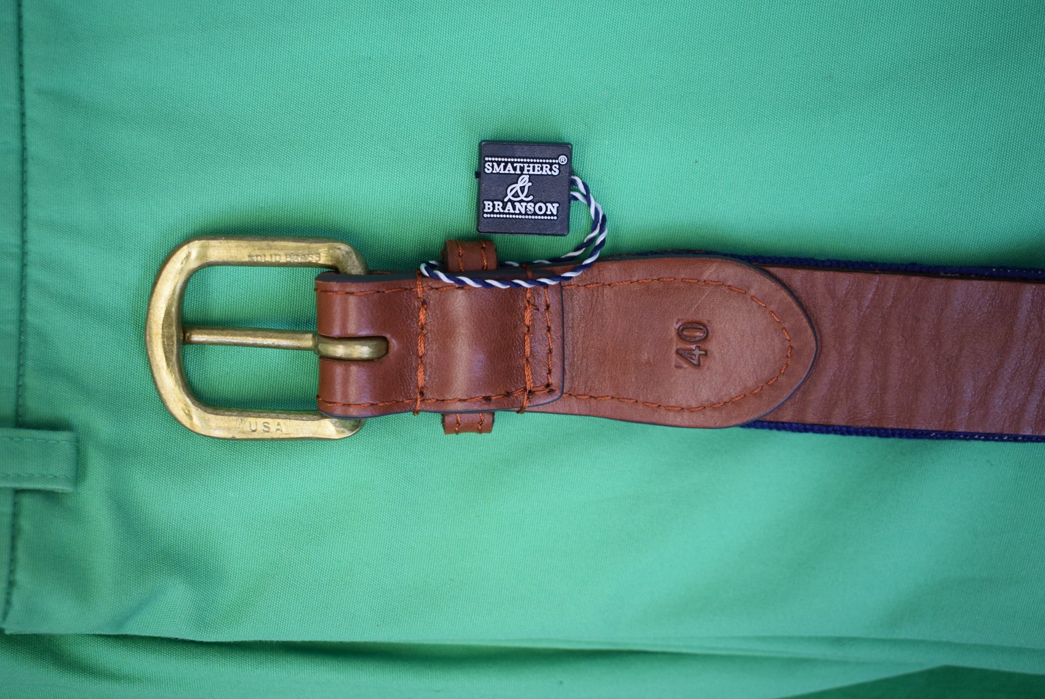 Smathers & Branson Keeneland Men's Starting Gate Dark Navy Needlepoint Belt Sz 40 (NWT)