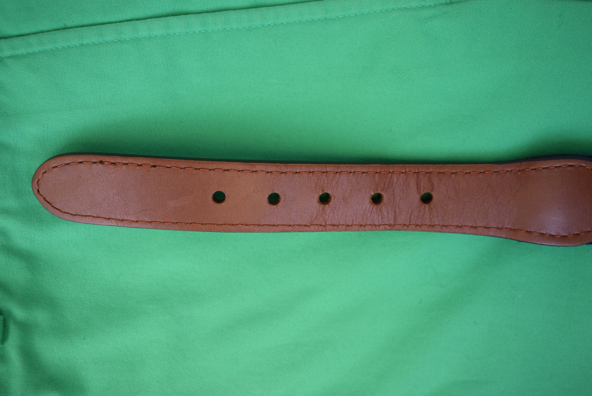 This hand-stitched traditional belt is 1.25" in width and is finished with full grain, vegetable tanned Italian leather and a solid brass buckle.