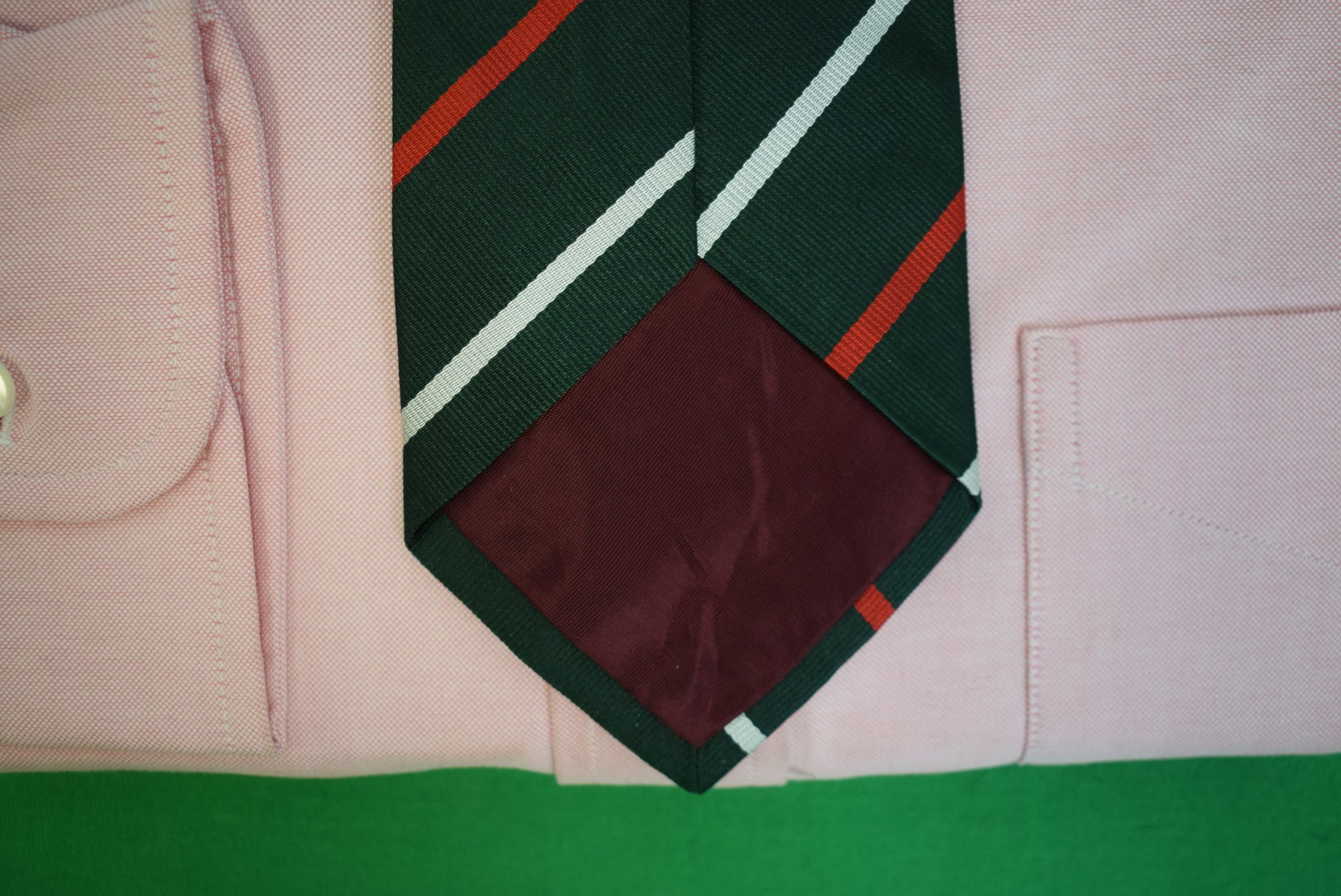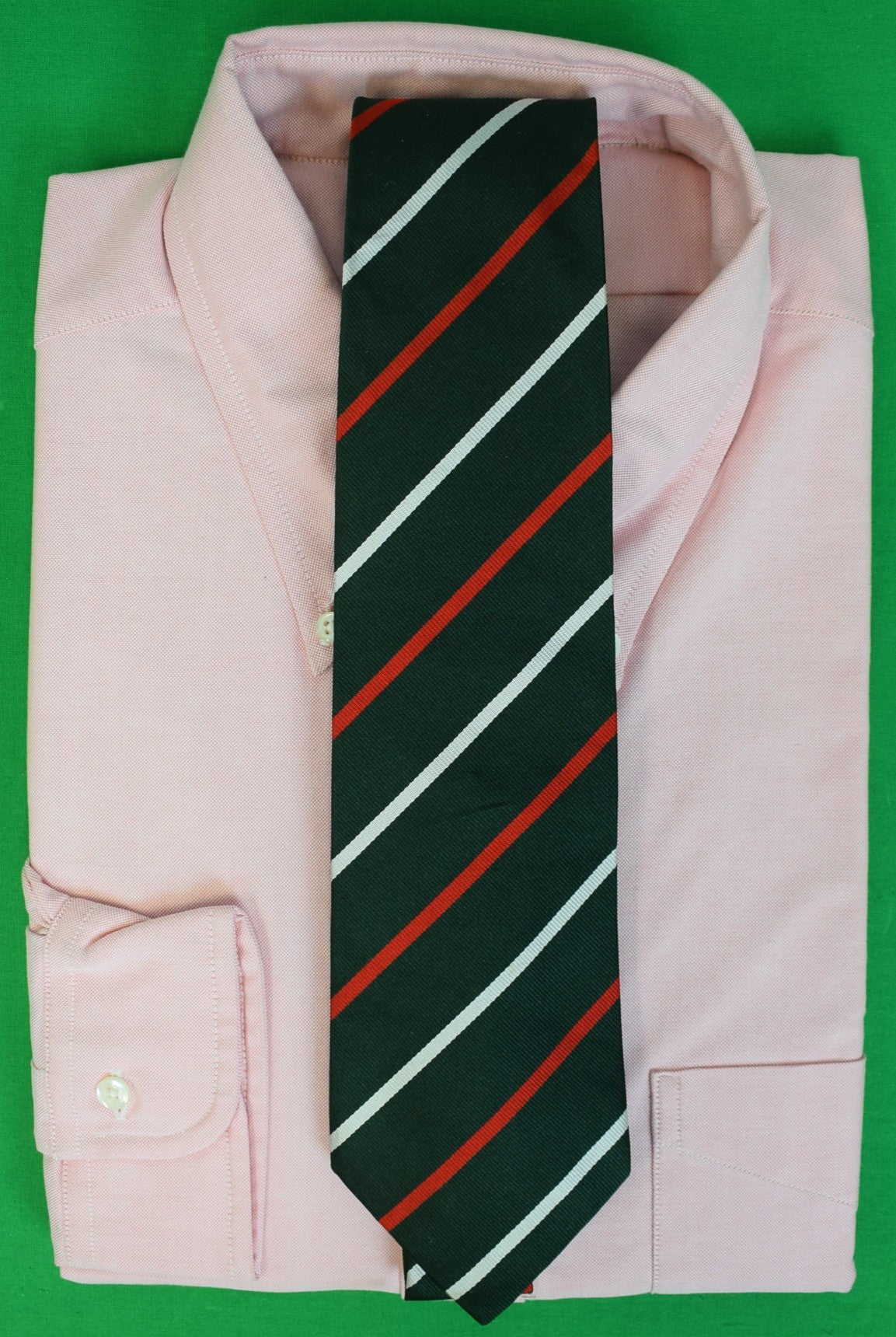 The Andover Shop Holiday Green w/ Red & White Repp Stripe English Silk Club Tie