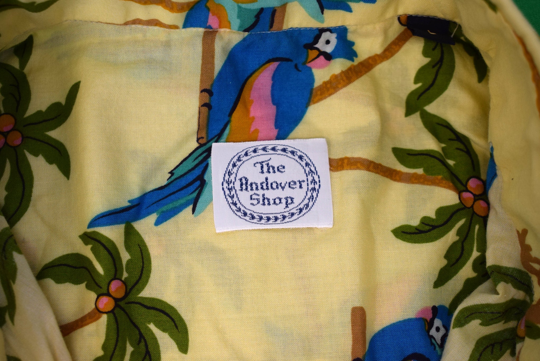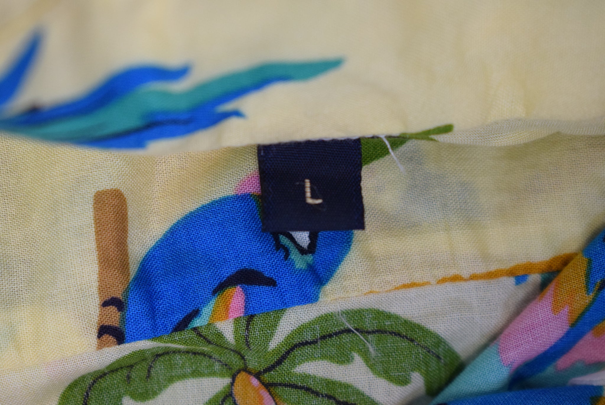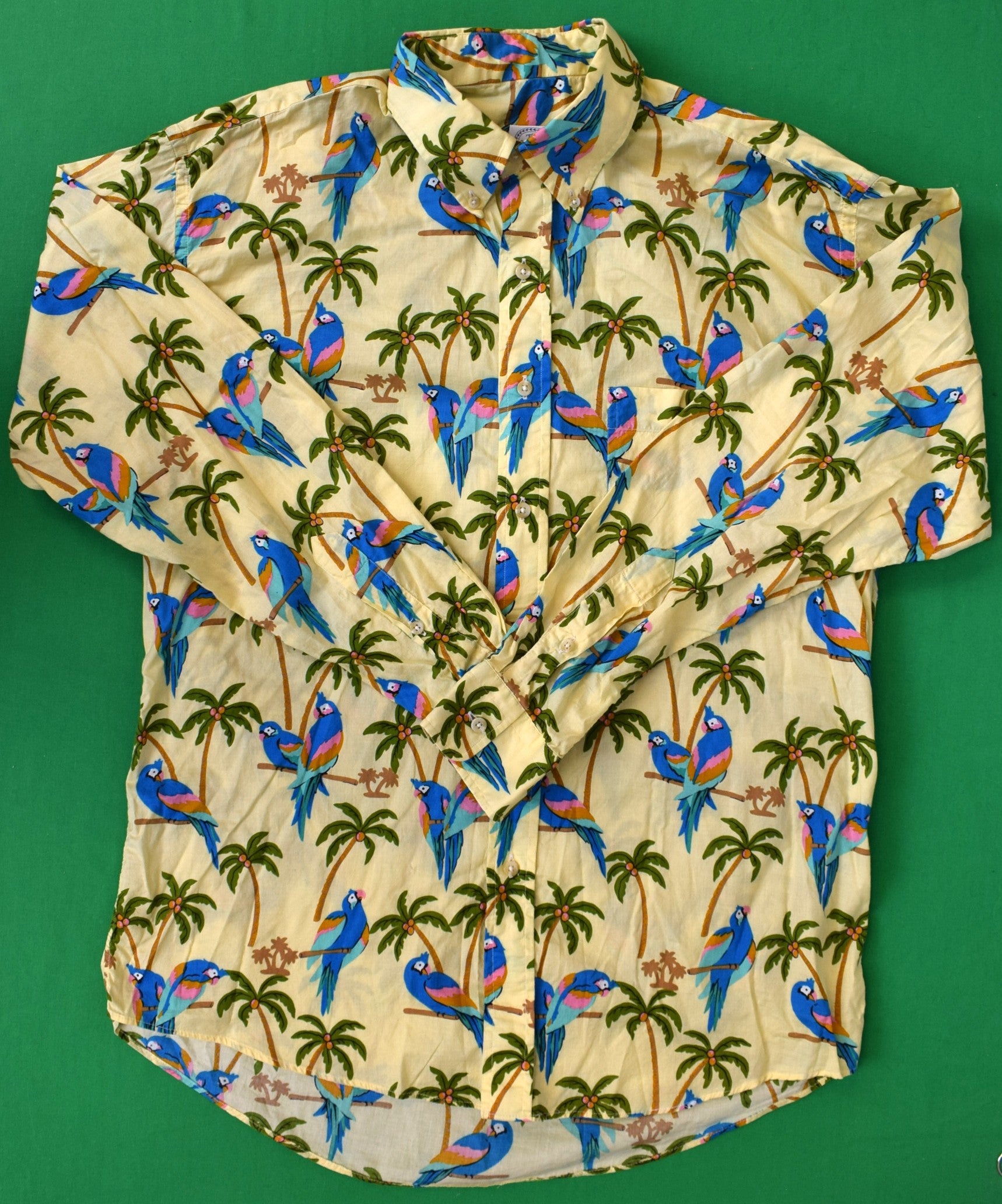 "The Andover Shop L/S Broadcloth B/D Sport Short w/ Tropical Parrot/ Palm Tree Print" Sz L