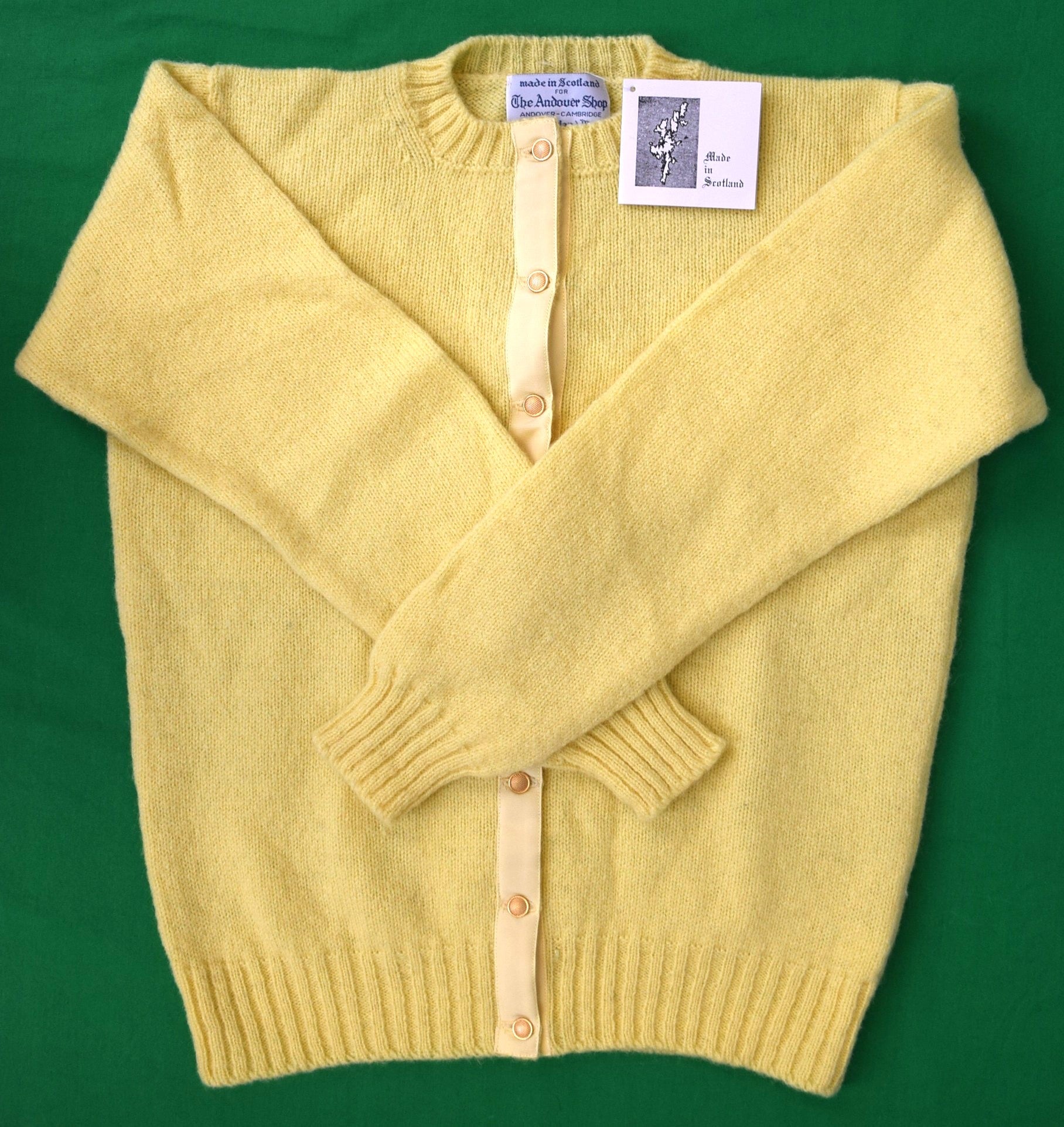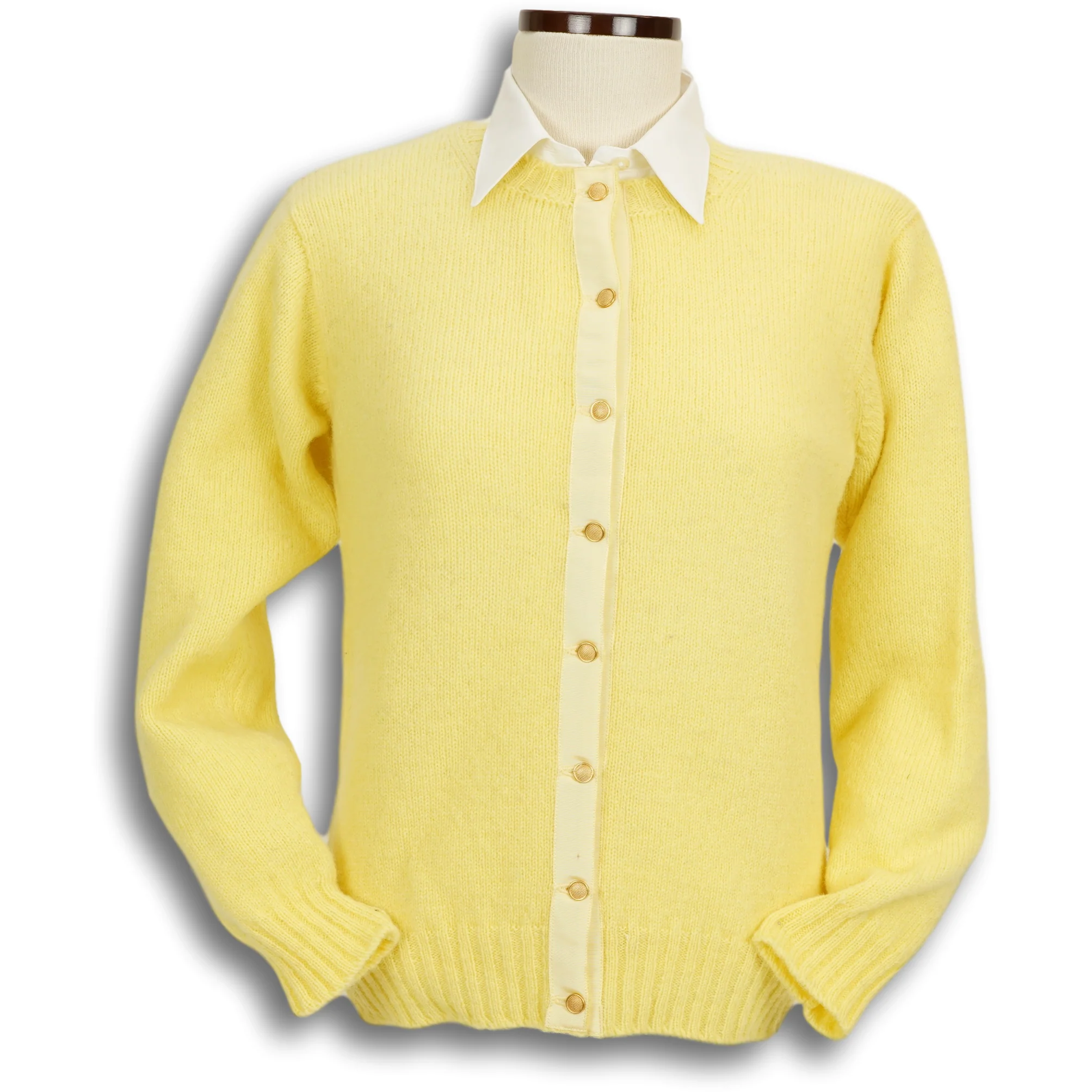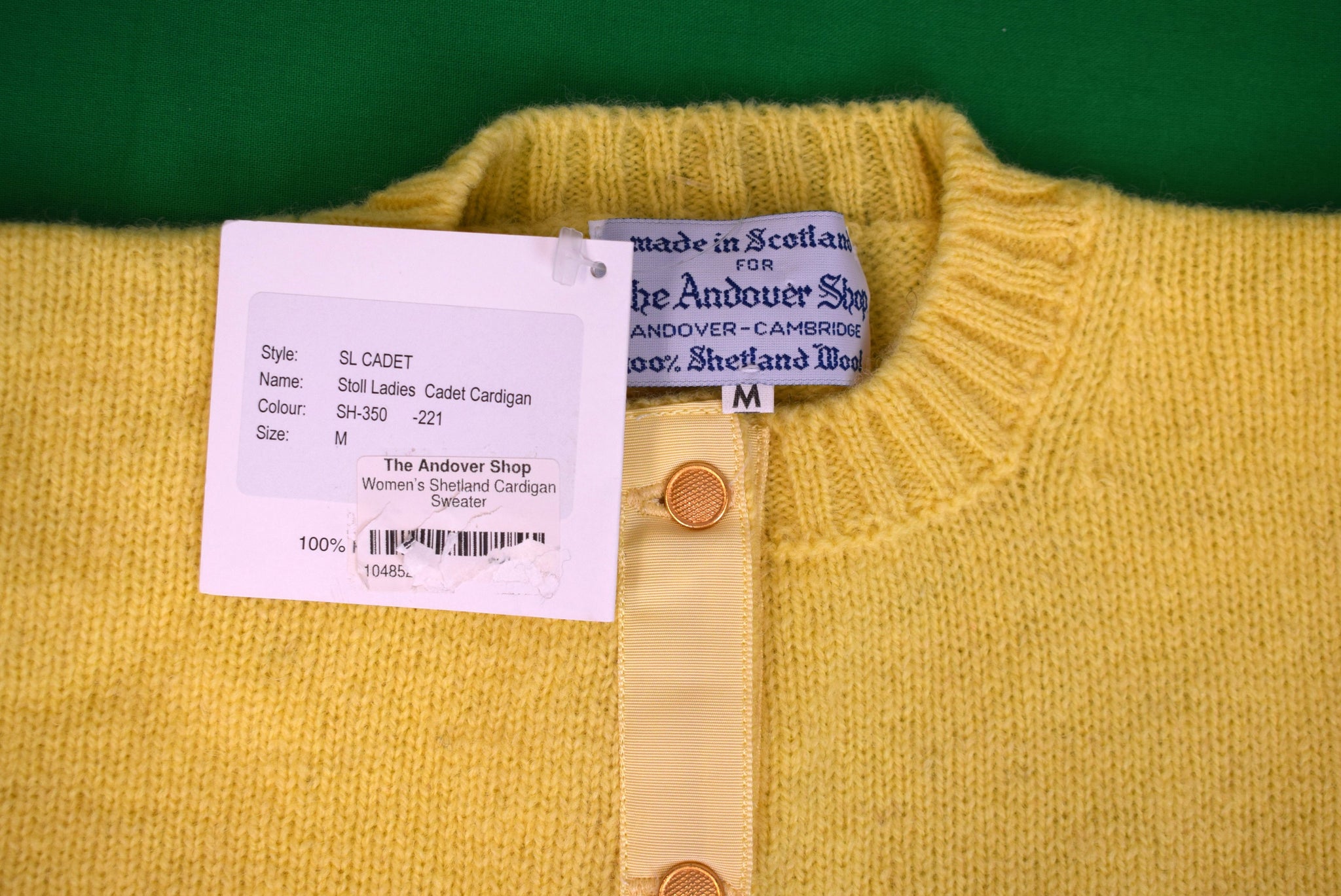 The Andover Shop Ladies Brushed Shetland Yellow Crew Neck Cardigan Sweater Sz M