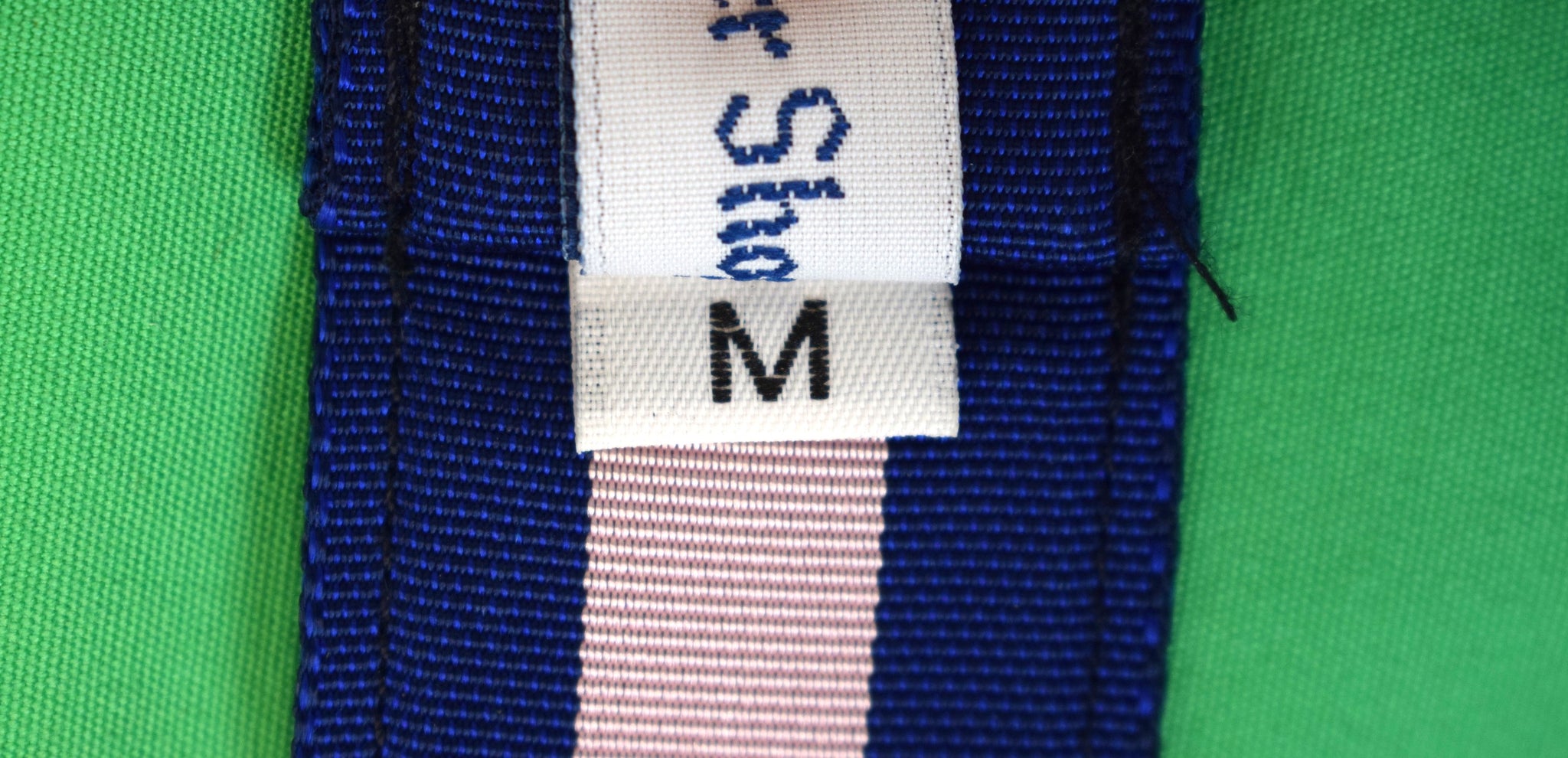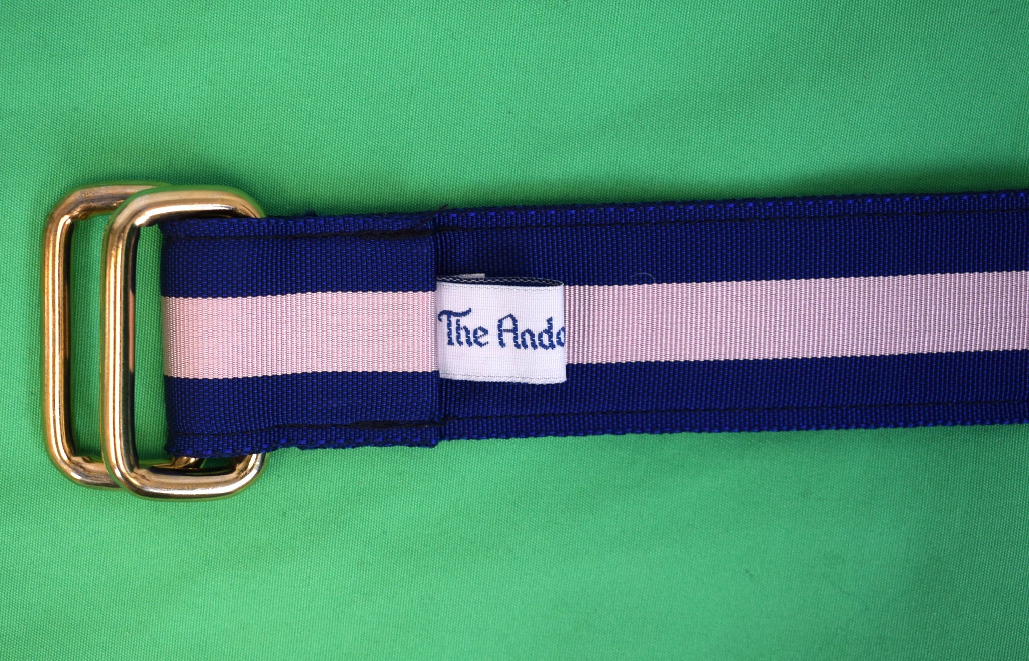 "The Andover Shop Navy/ Shell Pink Stripe Grosgrain Ribbon D-Ring Belt" Sz M