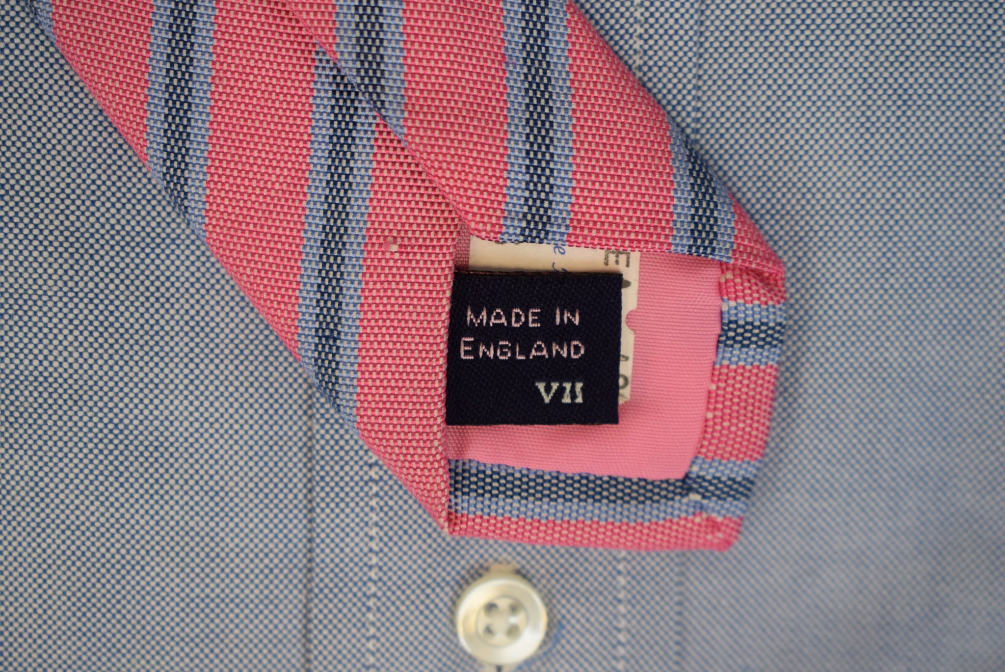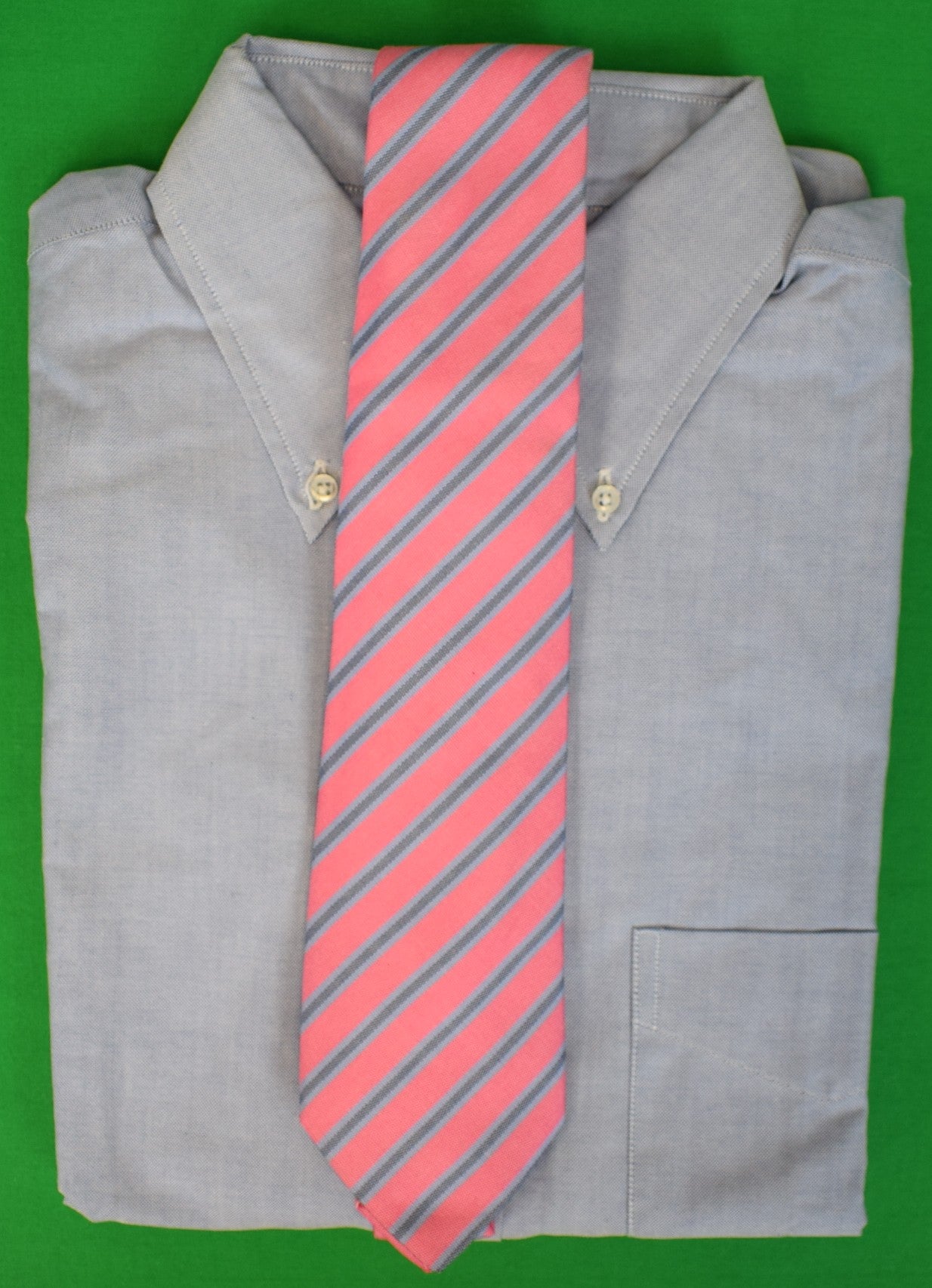 "The Andover Shop x Seaward & Stearn Pink w/ Blue Repp Stripe Silk/ Cotton Club Tie"