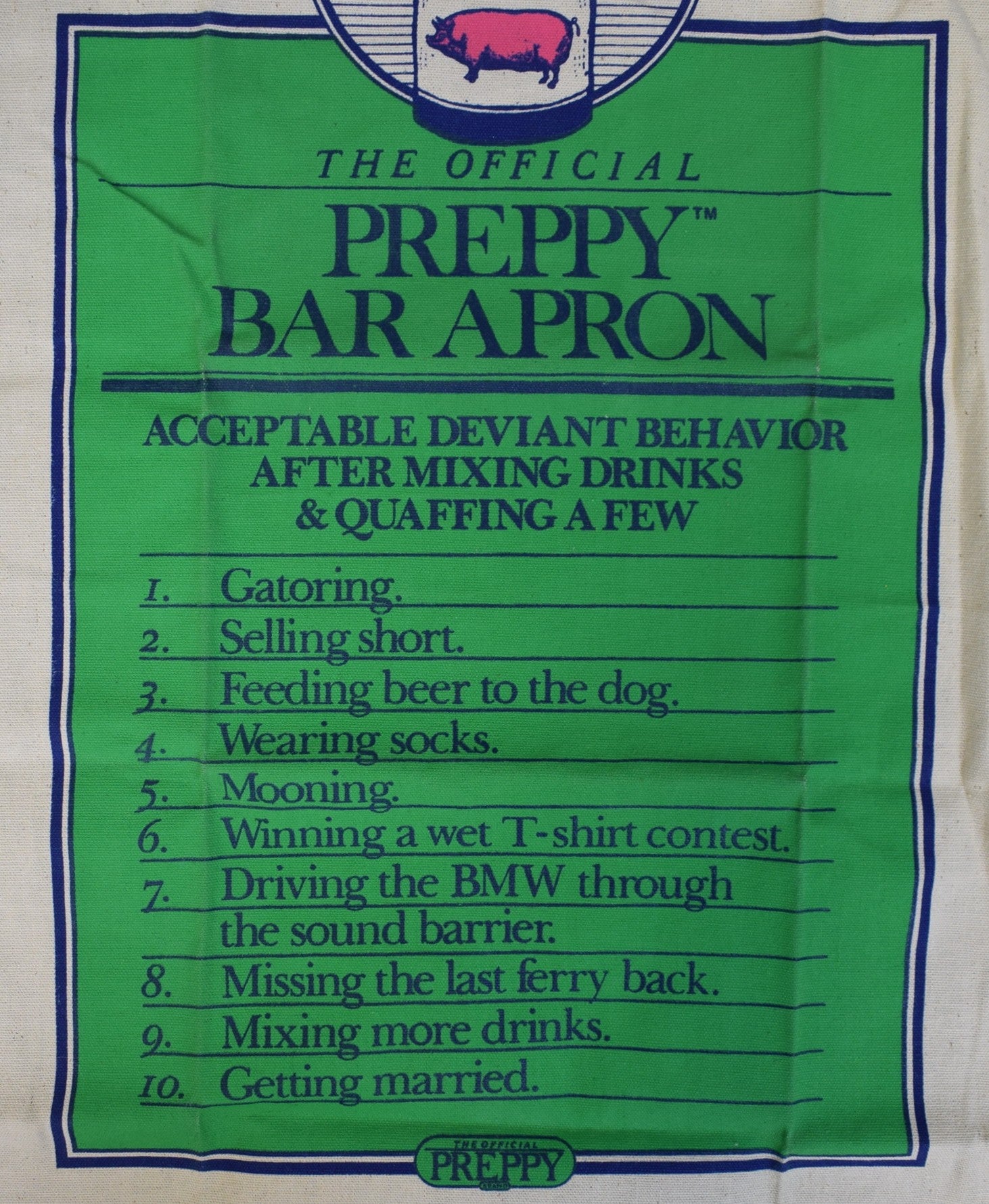 "The Official Preppy Bar c1981 Apron" (NWOT)