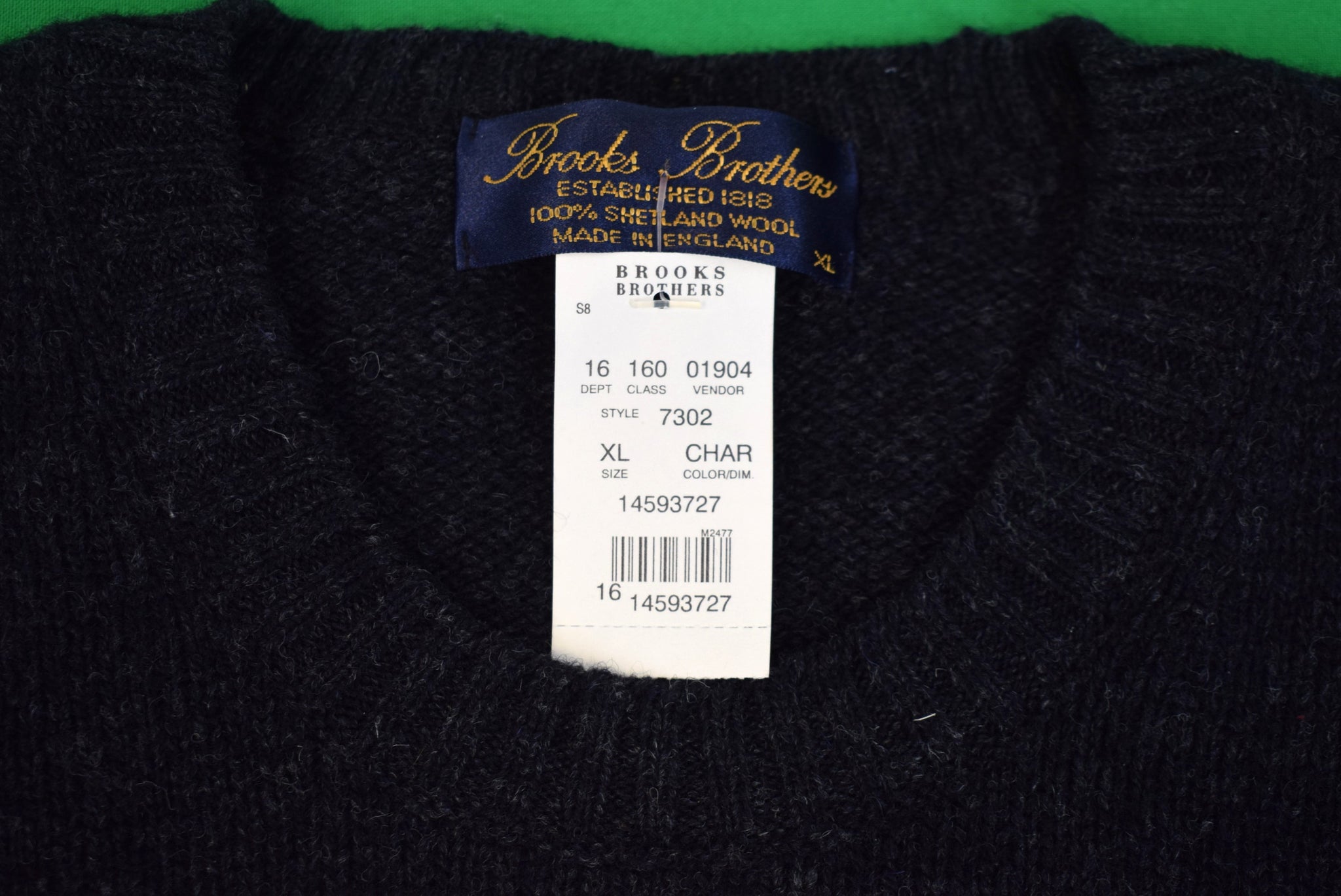 "Brooks Brothers Charcoal Grey Shetland Wool Crew Neck Sweater Made In England" Sz XL (NWT)