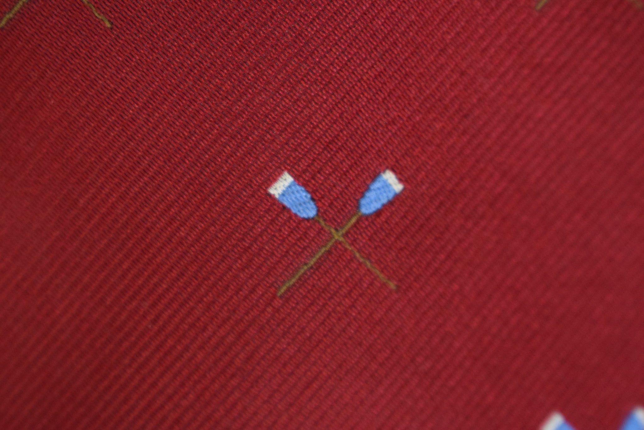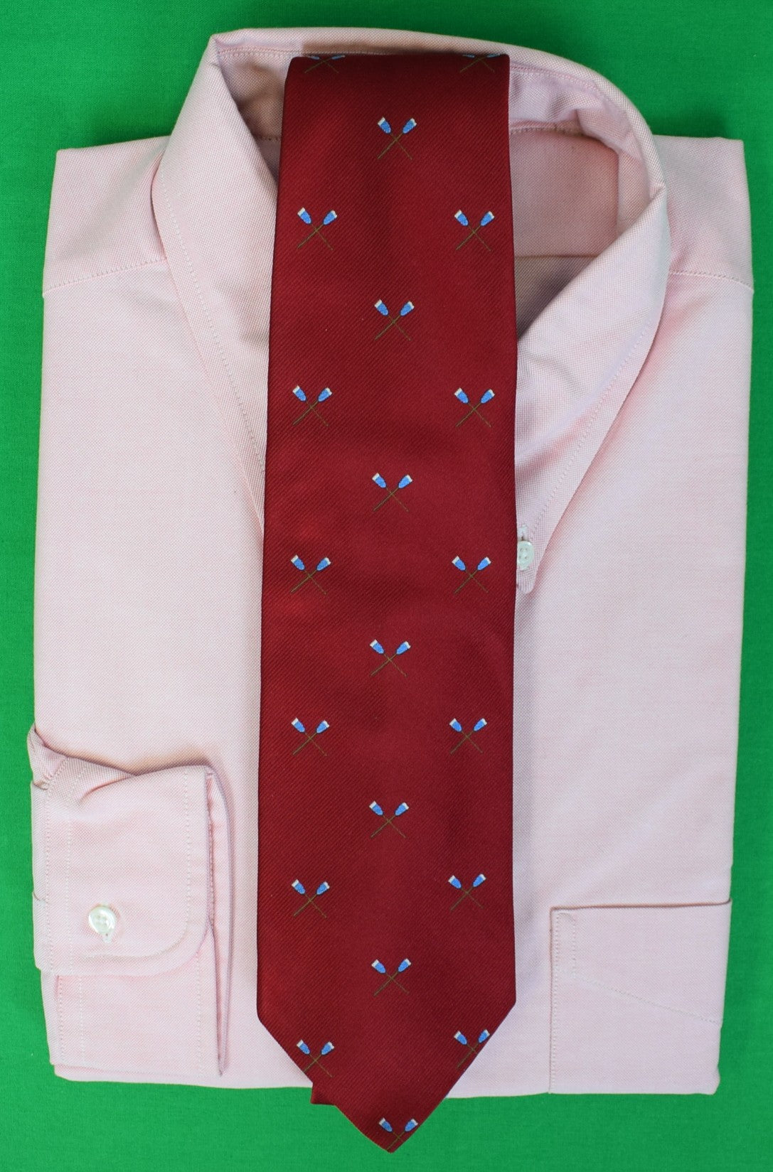 Brooks Brothers Red English Silk Club Tie w/ X'd Crew Oars